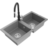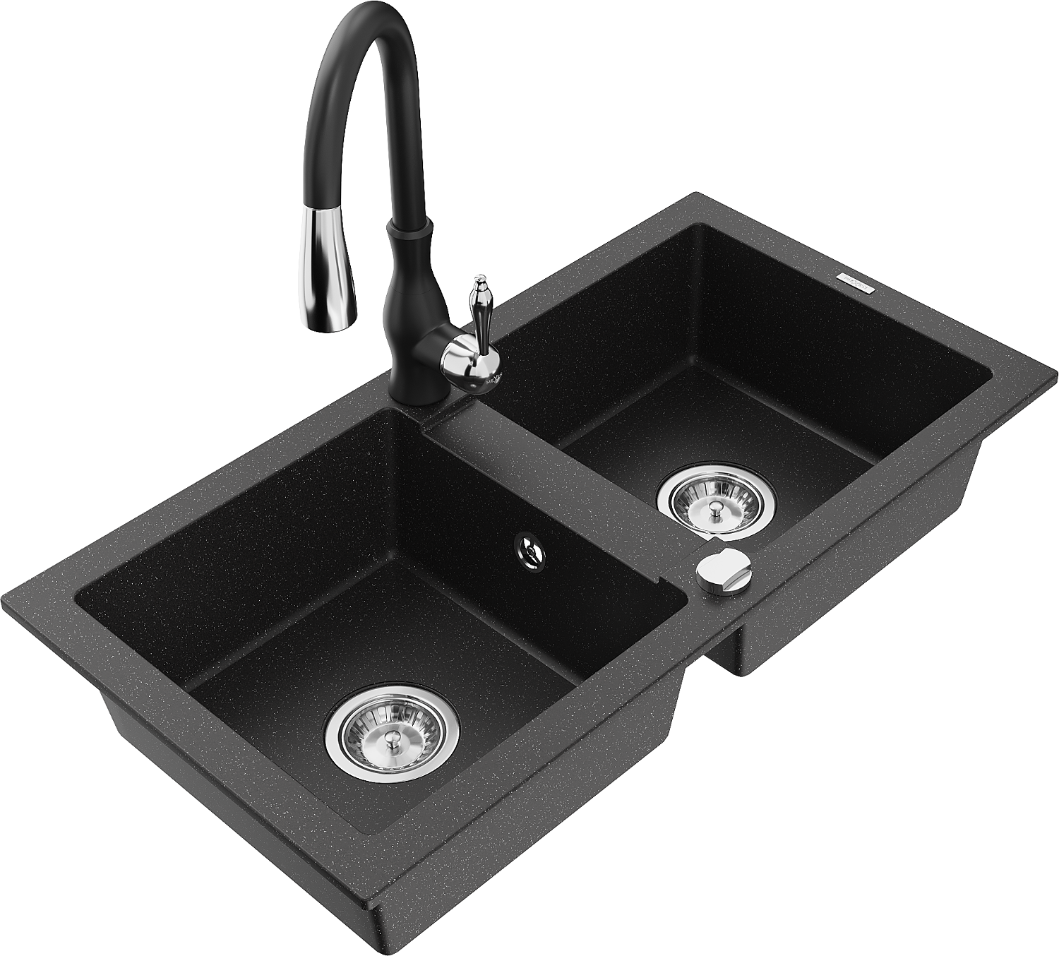 Mexen Mario žulový drez 2-komorový s kuchynskou batériou Savita, čierny/strieborný metalický - 6504-73-672601-70