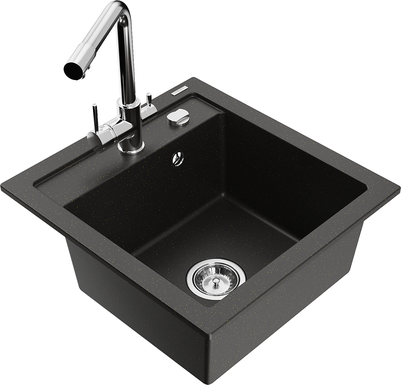Mexen Vito granitový drez 1-komorový s kuchynskou batériou Duero, čierny/zlatý metalický - 6503-75-671600-00