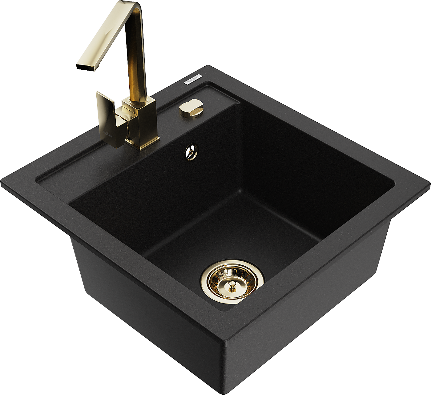 Mexen Vito granitový drez 1-komorový s kuchynskou batériou Rita, čierny - 6503-77-670300-50