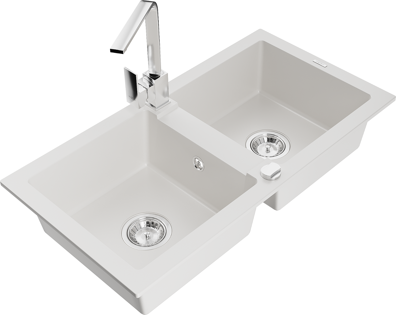 Mexen Mario žulový dvojkomorový kuchynský drez s kuchynskou batériou Rita, biely - 6504-20-670300-00
