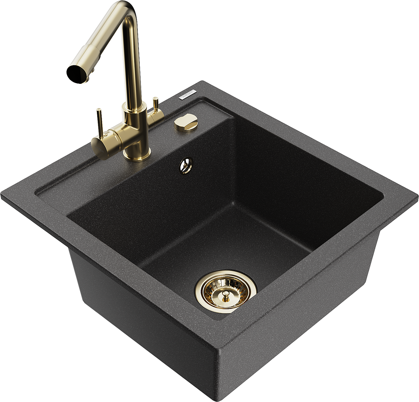 Mexen Vito granitový kuchynský drez 1-komorový s kuchynskou batériou Duero, čierny bodkovaný - 6503-76-671600-50