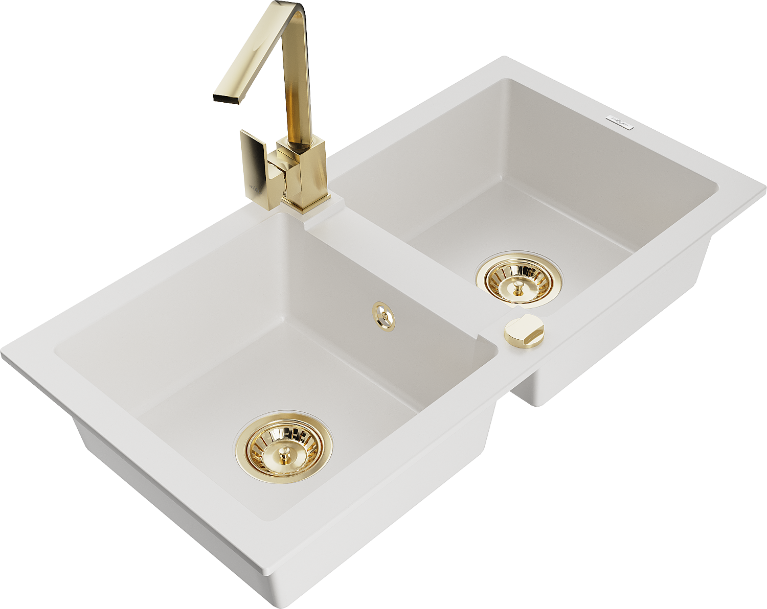 Mexen Mario dvojkomorový žulový drez s kuchynskou batériou Rita, biely - 6504-20-670300-50