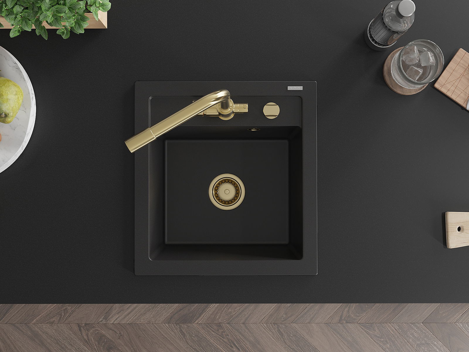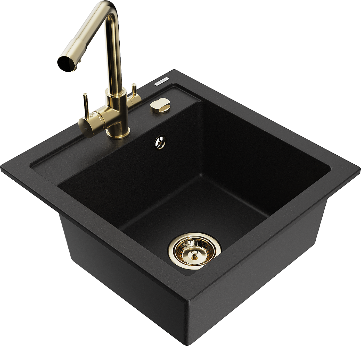 Mexen Vito žulový kuchynský drez s 1 komorou a kuchynskou batériou Duero, čierny - 6503-77-671600-50