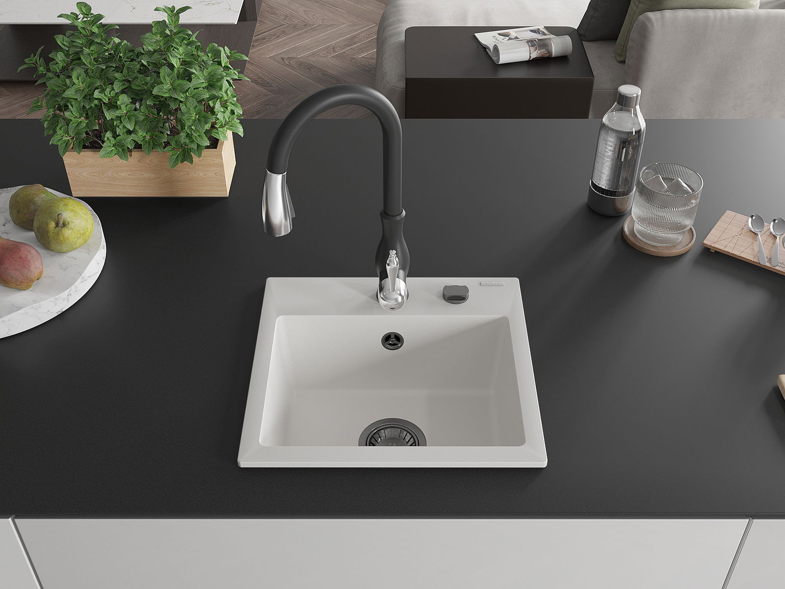 Povrch umývadla je odolný voči škvrnám a sfarbeniu, vďaka čomu sa ľahko čistí a zachováva si svoju farbu po dlhú dobu. Estetický a prakticky dopĺňajúci každú kuchyňu.