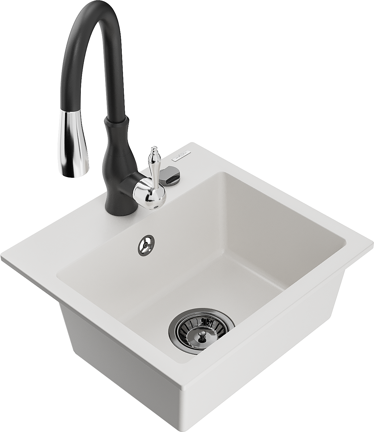 Mexen Milo žulový drez 1-komorový s kuchynskou batériou Savita, biely - 6505-20-672601-70