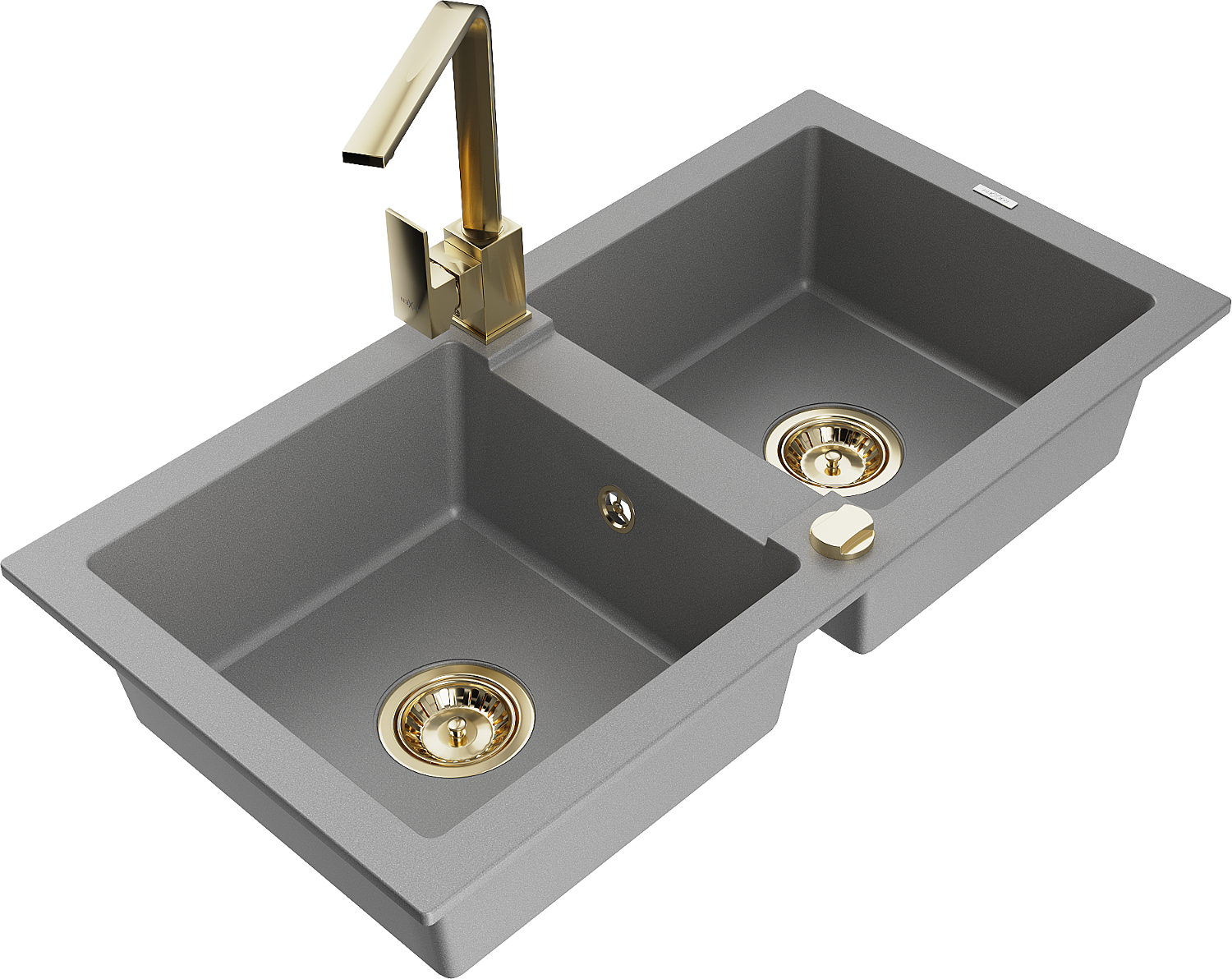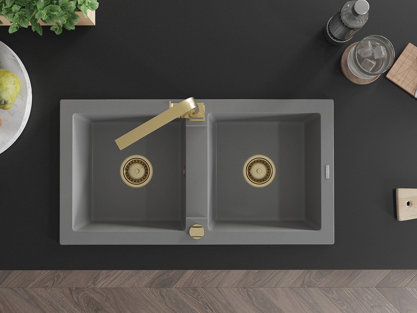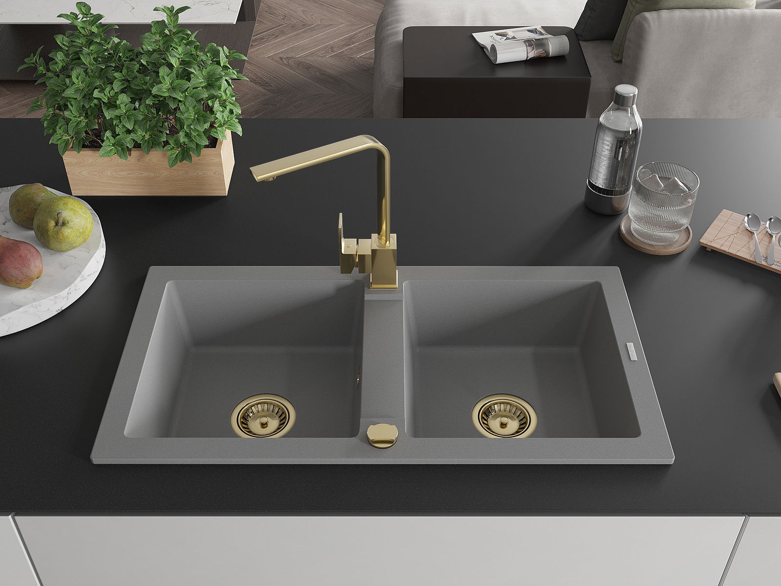 Mexen Mario granitový drez s 2 komorami a kuchynskou batériou Rita, sivý - 6504-71-670300-50