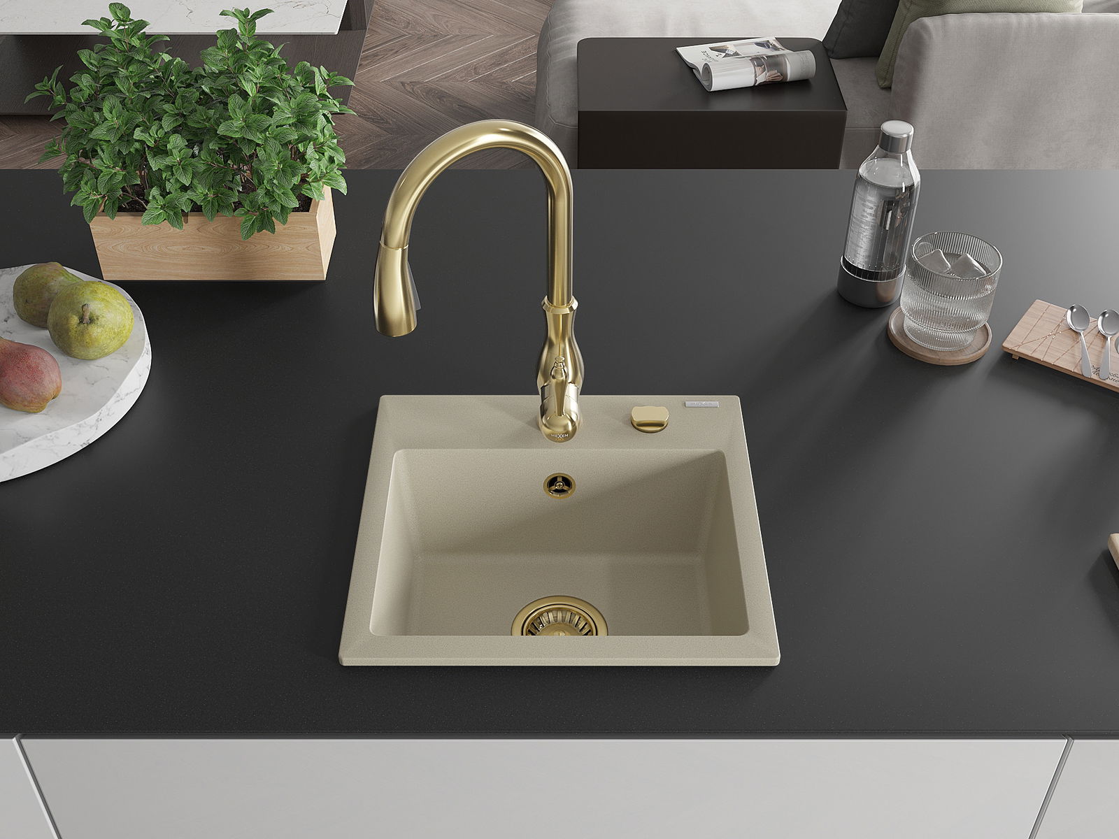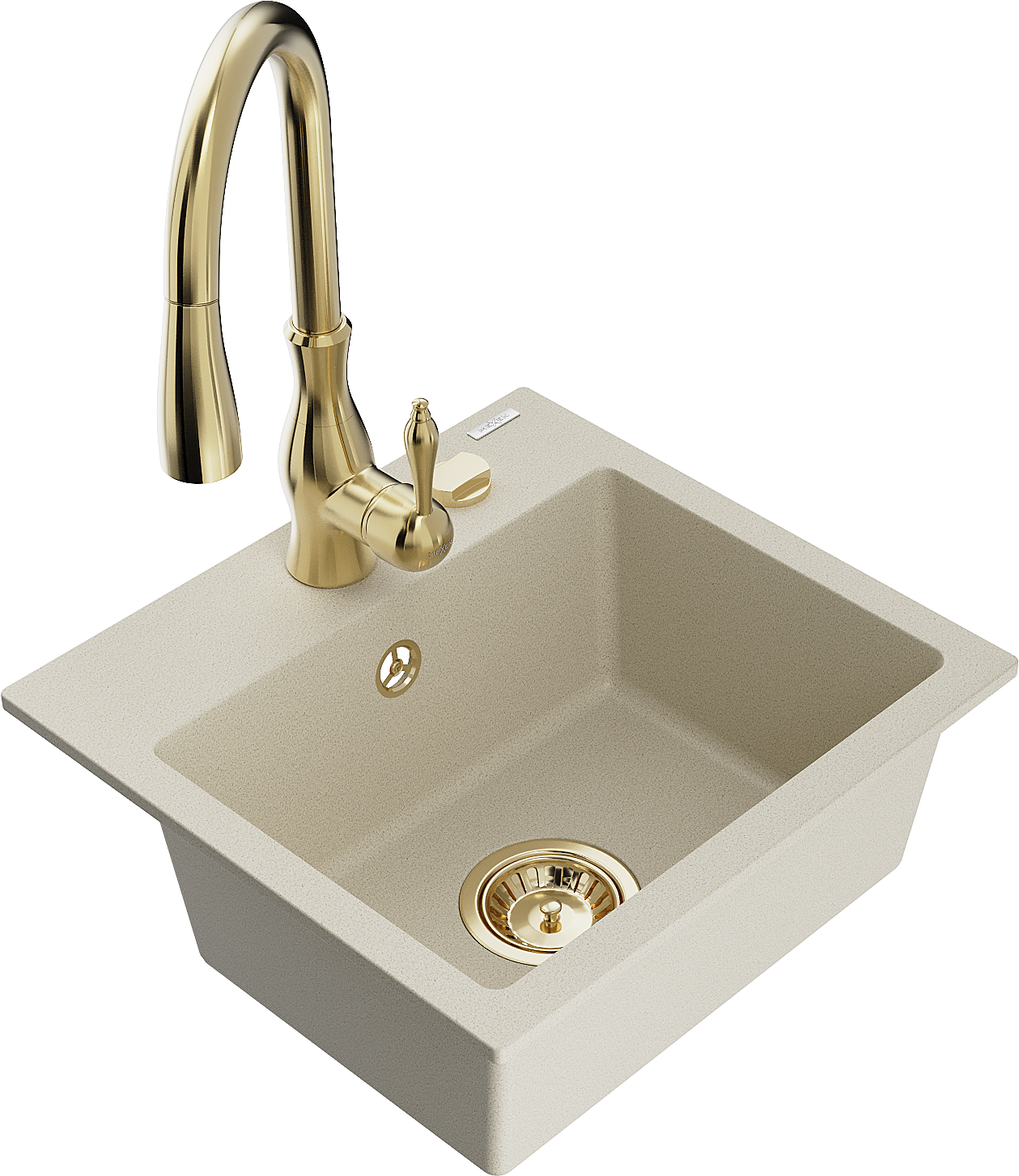 Mexen Milo kuchynský drez granitový s 1-komorou a kuchynskou batériou Savita, béžový - 6505-69-672601-50