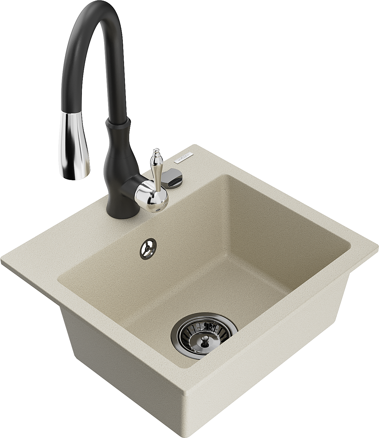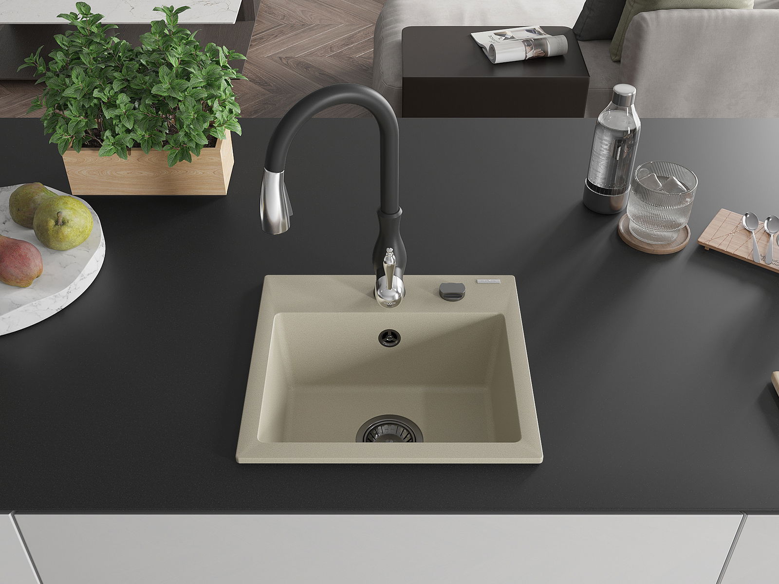 Mexen Milo žulový drez 1-komorový s kuchynskou batériou Savita, béžový - 6505-69-672601-70