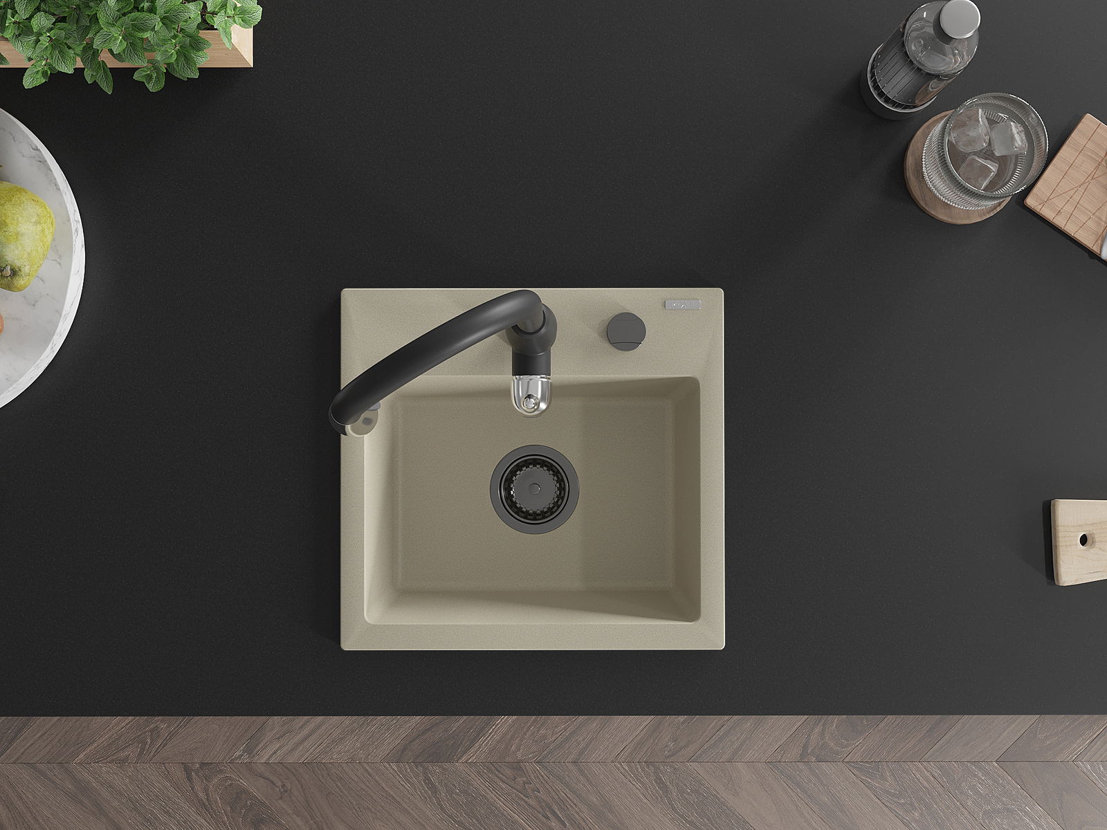 Povrch kuchynského drezu je odolný voči škvrnám a zafarbeniu, vďaka čomu sa ľahko udržiava a zachováva svoju farbu počas dlhého obdobia používania. Estetický a praktický doplnok pre každú kuchyňu.