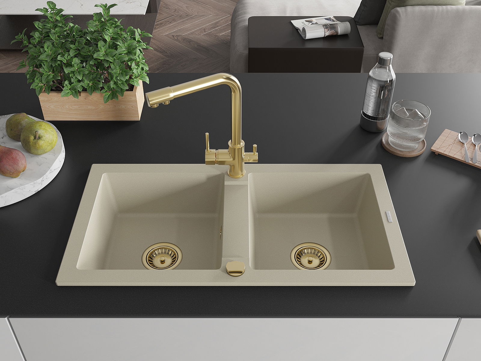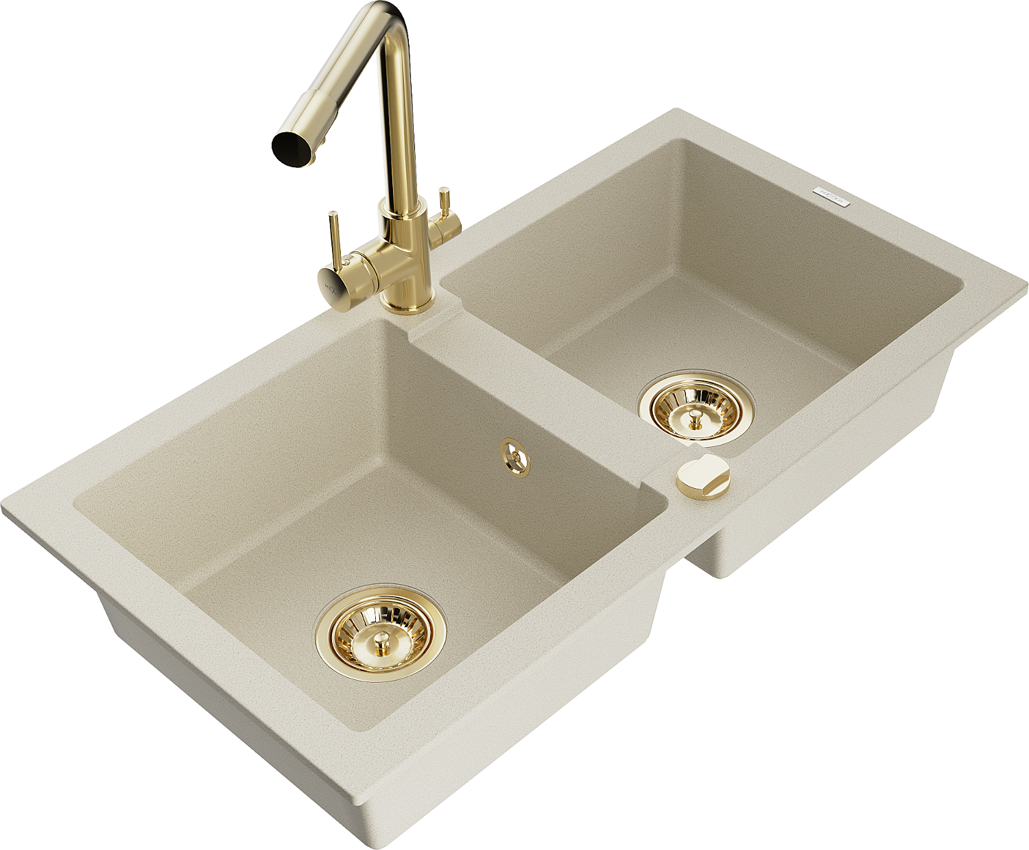 Mexen Mario granitový dvojkomorový kuchynský drez s batériou Duero, béžový - 6504-69-671600-50