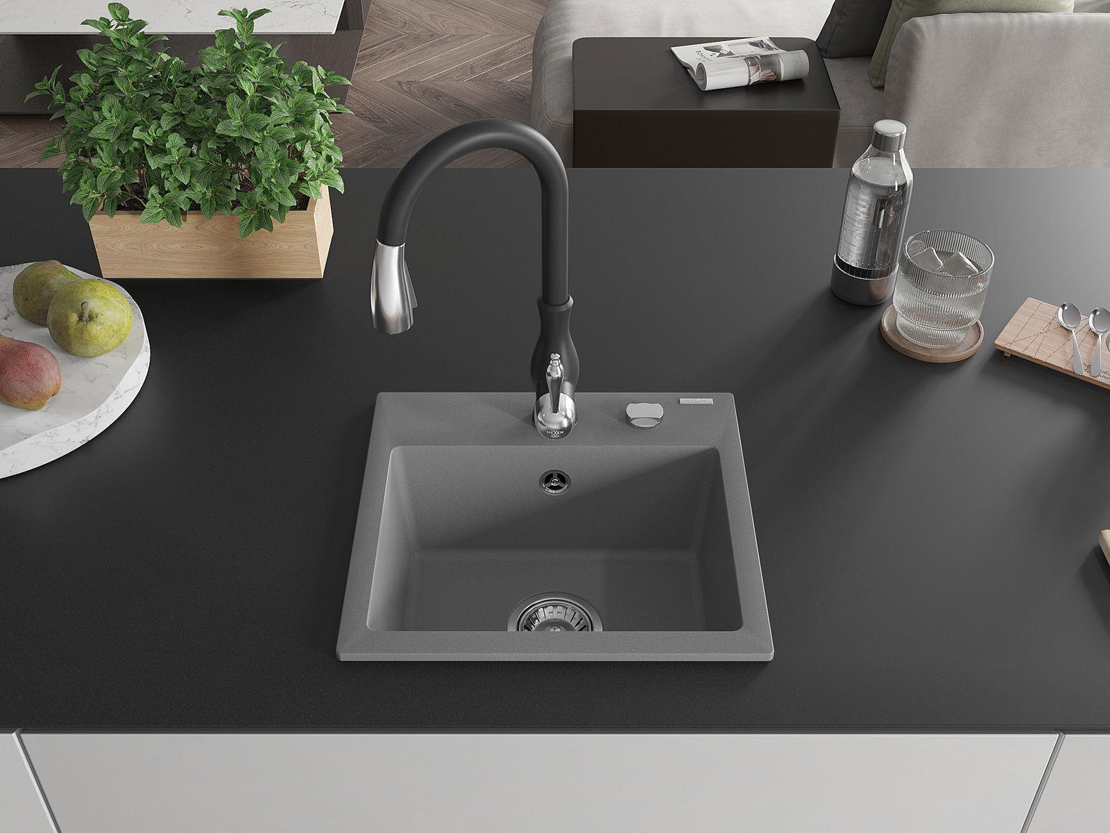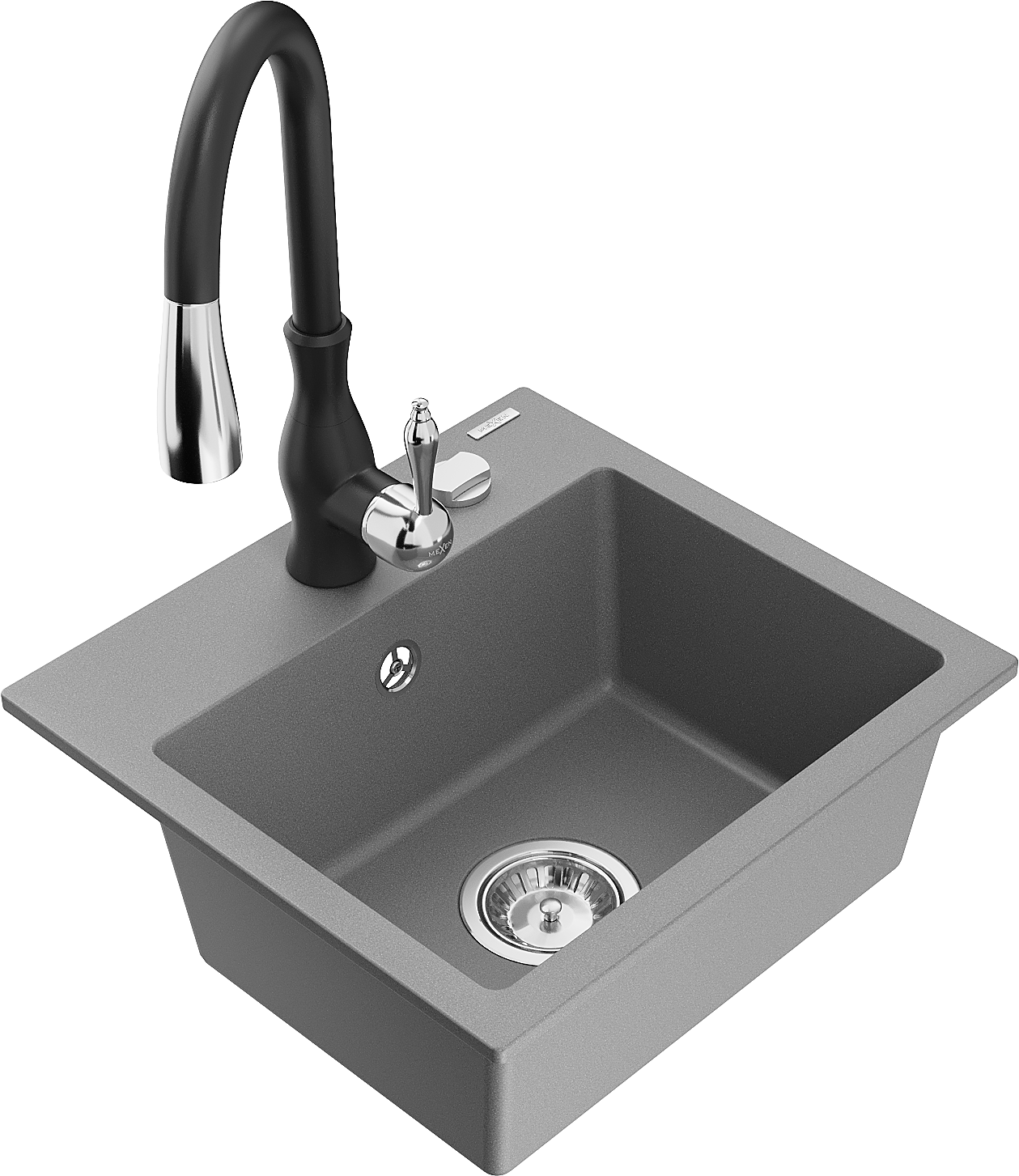 Mexen Milo žulový drez 1-komorový s kuchynskou batériou Savita, sivý - 6505-71-672601-70