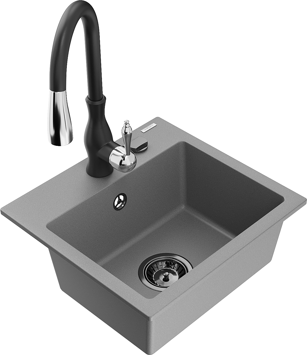 Mexen Milo žulový drez 1-komorový s kuchynskou batériou Savita, sivý - 6505-71-672601-70-B