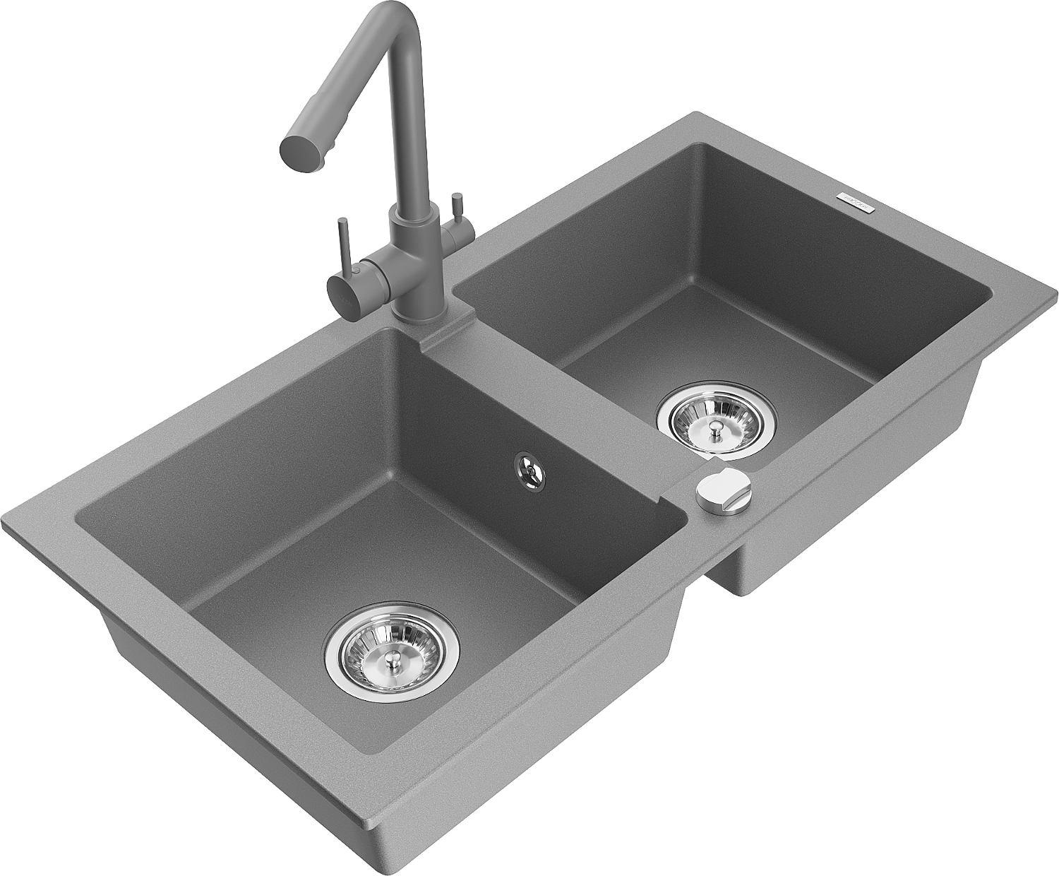 Mexen Mario žulový kuchynský drez 2-komorový s kuchynskou batériou Duero, šedý - 6504-71-671600-71