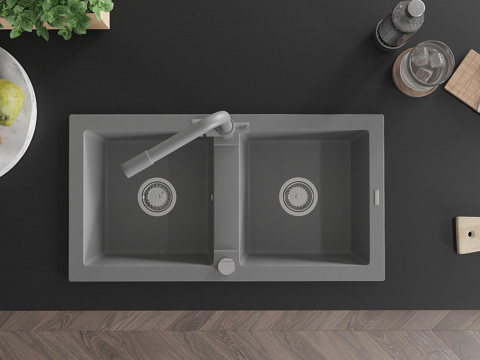 Povrch umývadla je odolný voči škvrnám a sfarbeniu, vďaka čomu sa ľahko čistí a zachováva si svoju farbu po dlhú dobu. Estetický a prakticky dopĺňajúci každú kuchyňu.