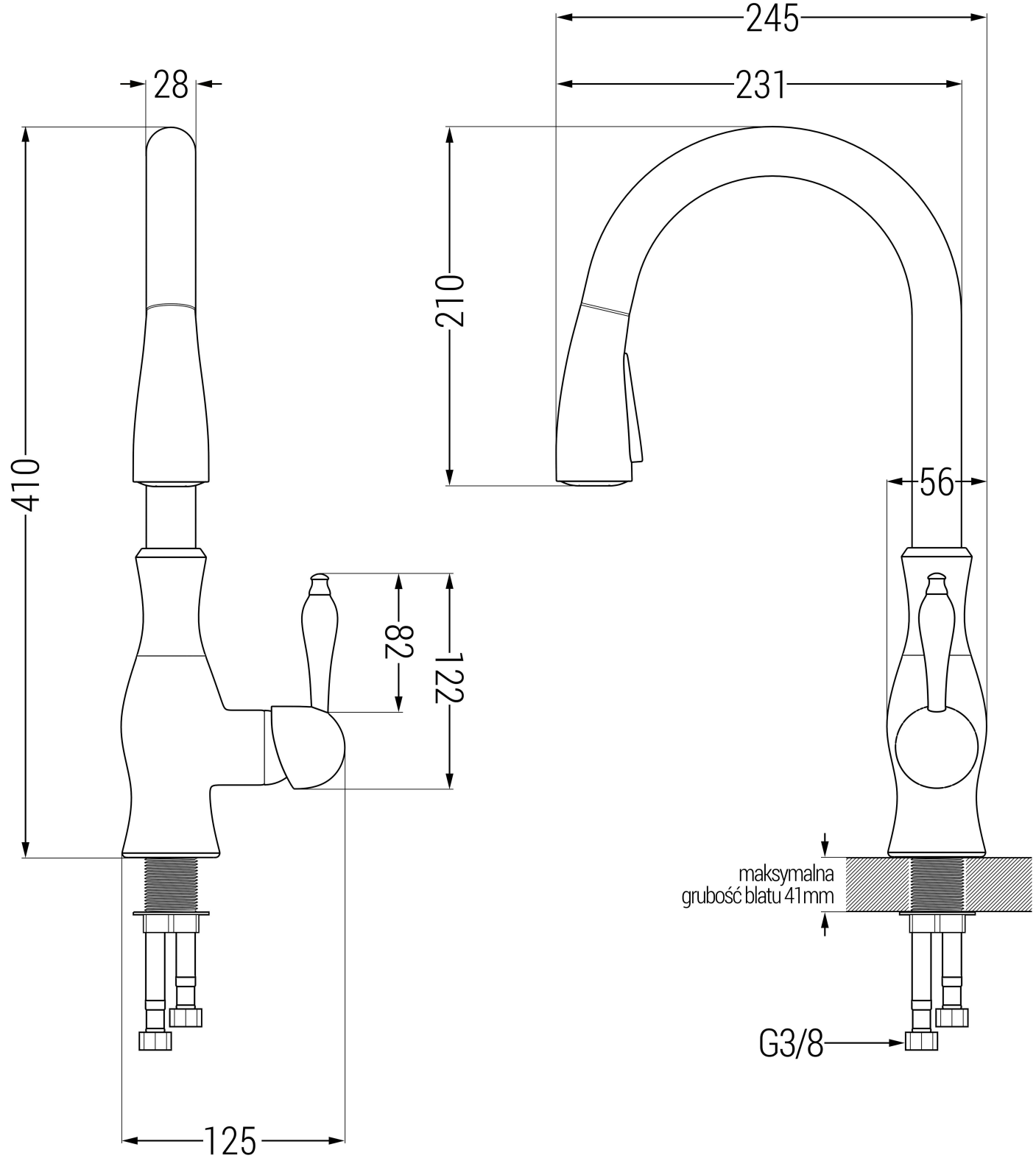 Batéria má 2 režimy práce: bežný a sprchový. Prúd vody je možné ľahko zmeniť a prispôsobiť individuálnym potrebám. Týmto spôsobom sa umývanie riadu stane ešte jednoduchšie, pohodlnejšie a efektívnejšie.