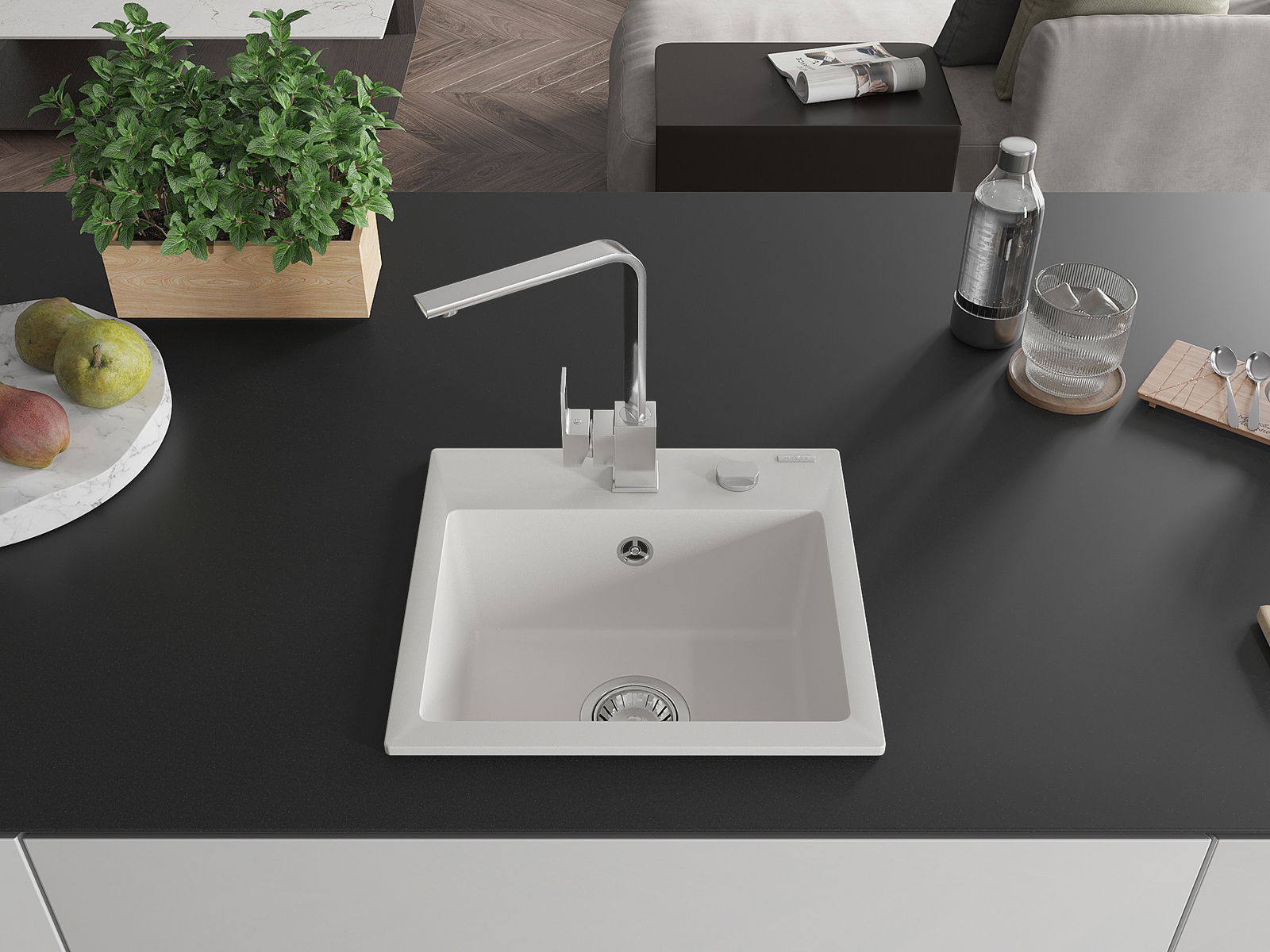 Povrch umývadla je odolný voči škvrnám a sfarbeniu, vďaka čomu sa ľahko čistí a zachováva si svoju farbu po dlhú dobu. Estetický a prakticky dopĺňajúci každú kuchyňu.