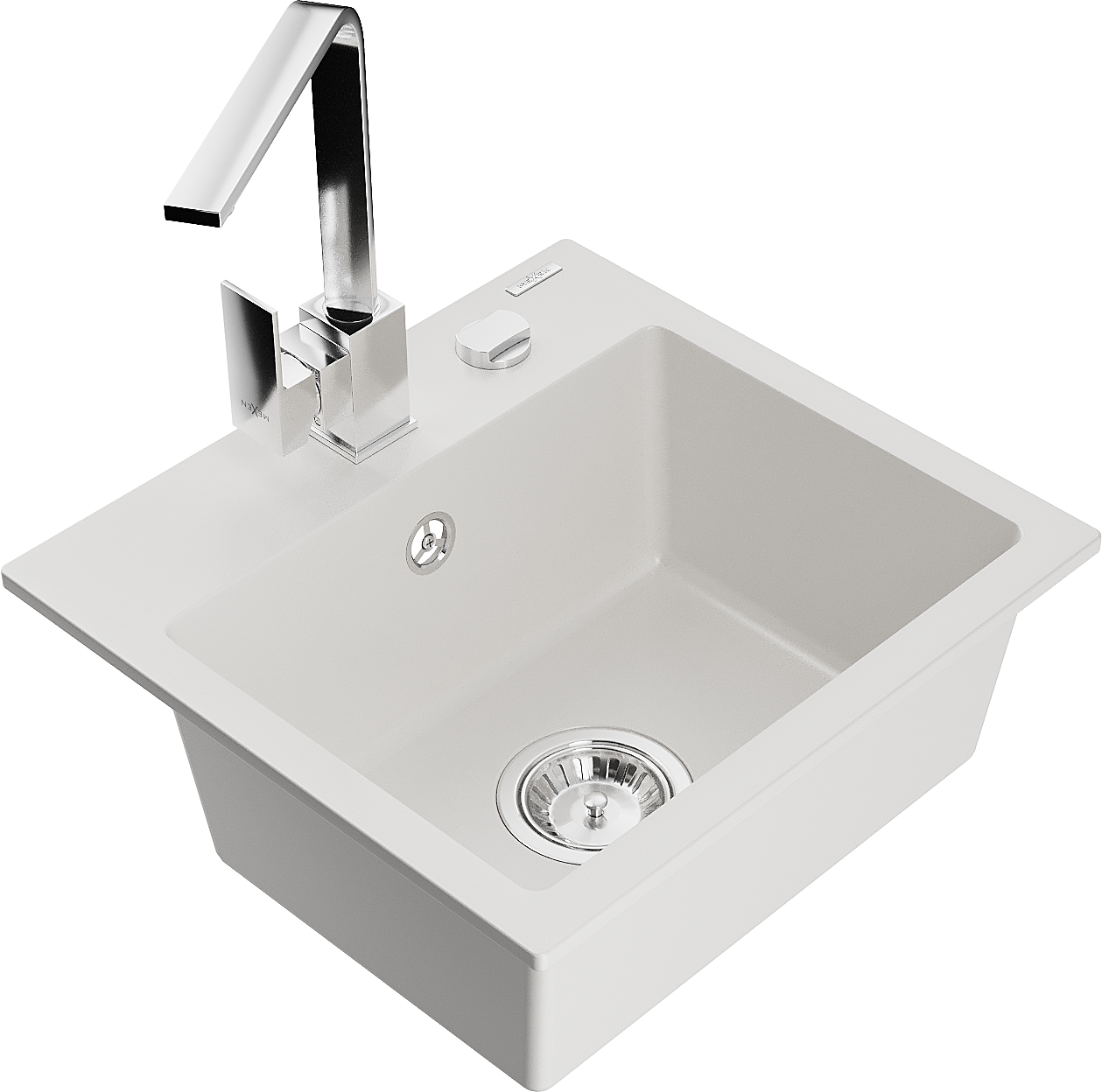 Mexen Milo žulový drez 1-komorový s kuchynskou batériou Rita, biely - 6505-20-670300-00
