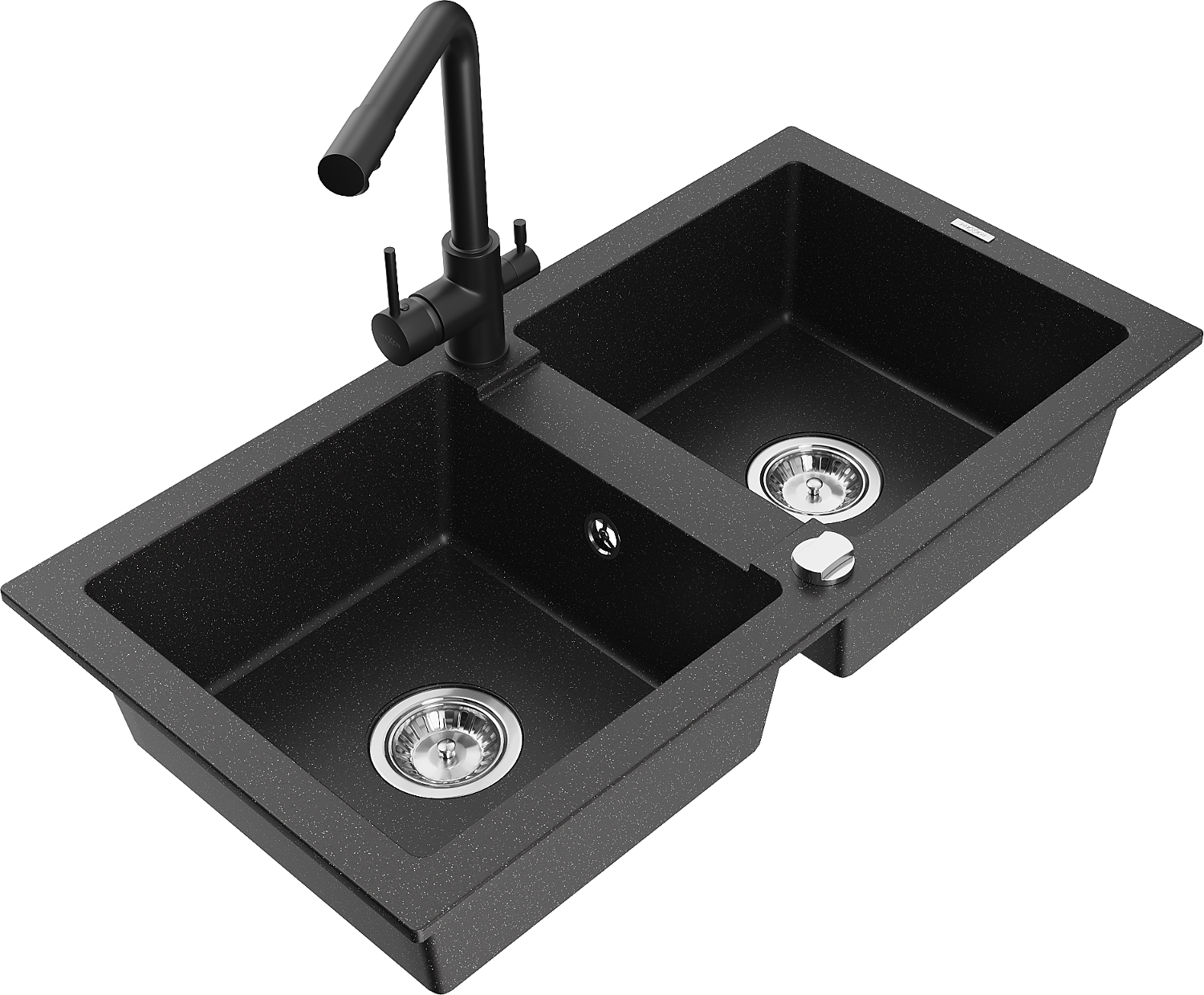 Mexen Mario granitový drez 2-komorový s kuchynskou batériou Duero, čierny/strieborný metalik - 6504-73-671600-70