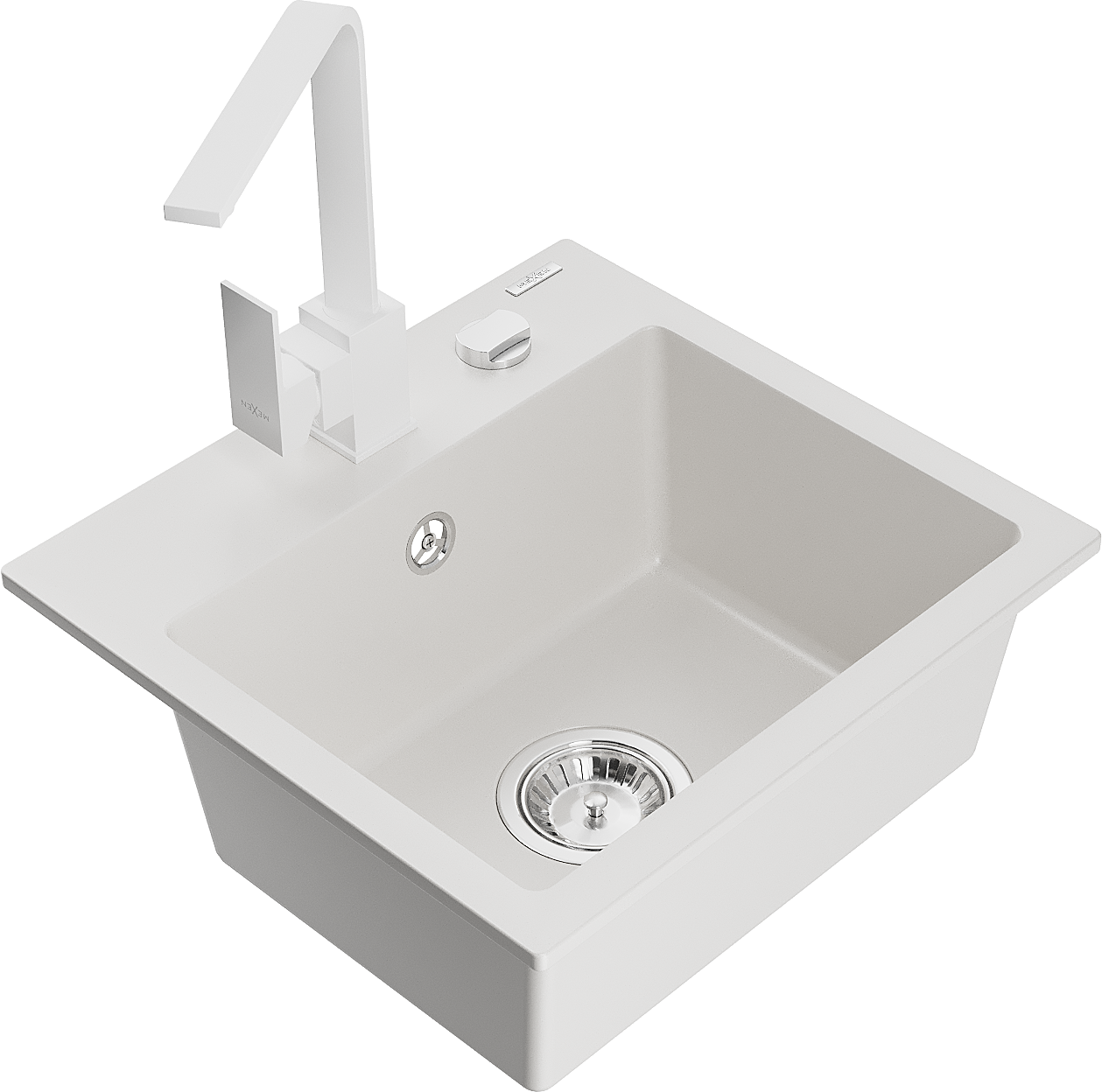 Mexen Milo granitový drez s 1-komorou a kuchynskou batériou Rita, biela - 6505-20-670300-20