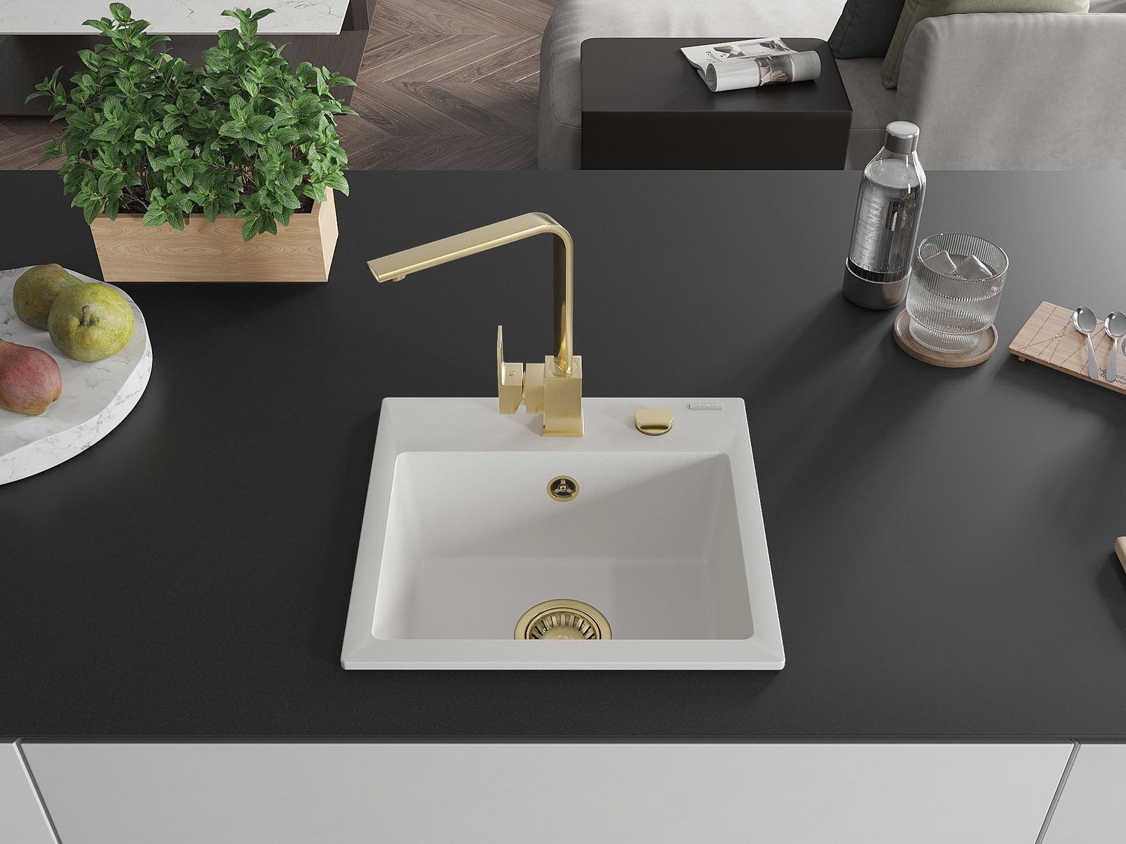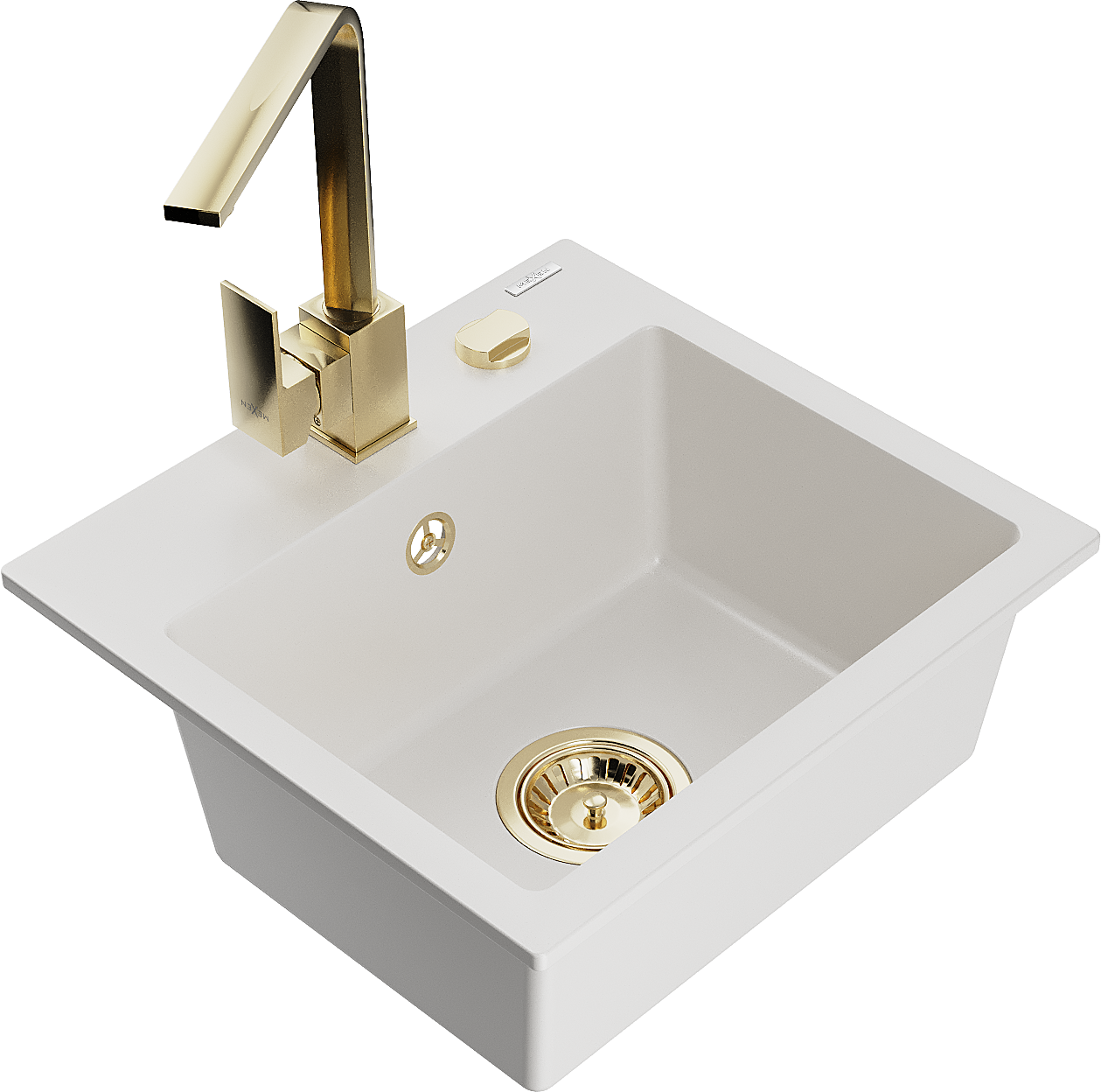 Mexen Milo žulový drez s 1-komorou a kuchynskou batériou Rita, biela - 6505-20-670300-50