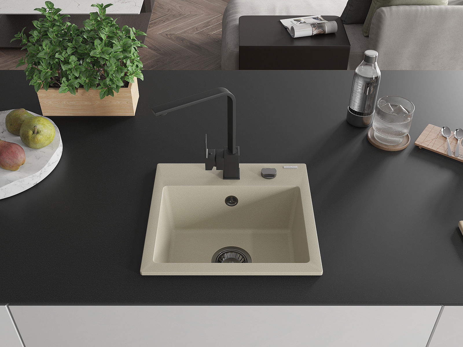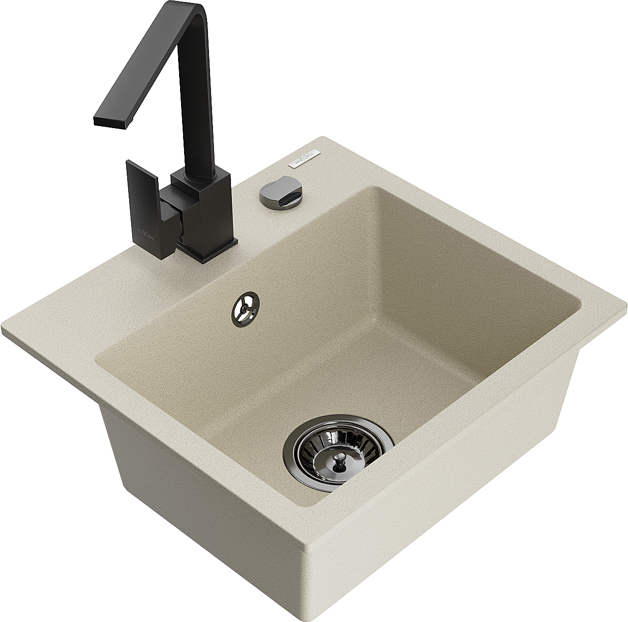 Mexen Milo žulový kuchynský drez s 1 komorou a kuchynskou batériou Rita, béžový - 6505-69-670300-70