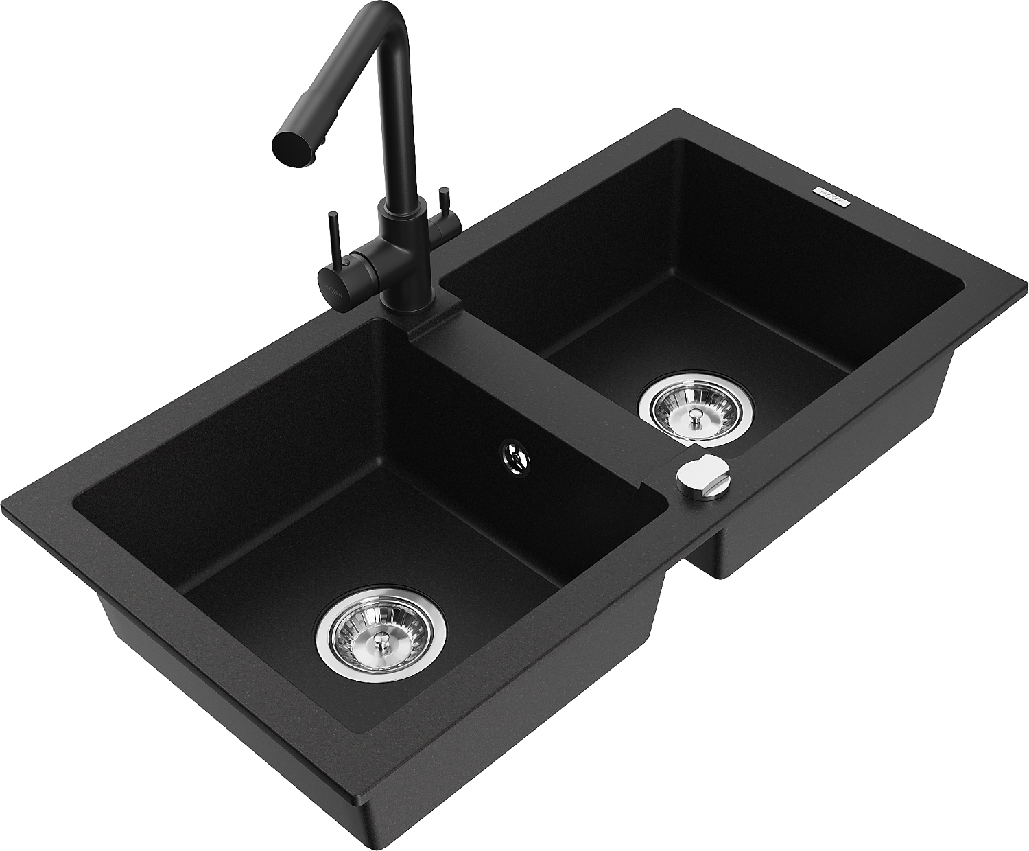 Mexen Mario granitový dvojkomorový drez s kuchynskou batériou Duero, čierny - 6504-77-671600-70