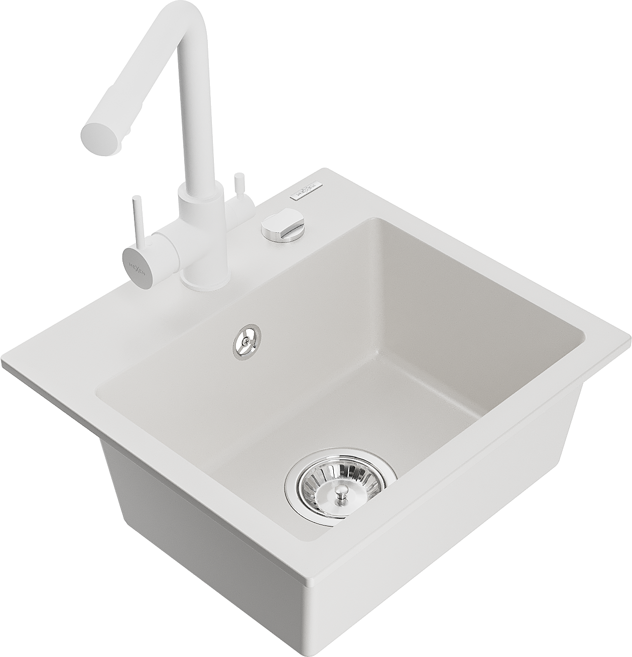 Mexen Milo granitový drez s 1 komorou a kuchynskou batériou Duero, biely - 6505-20-671600-20