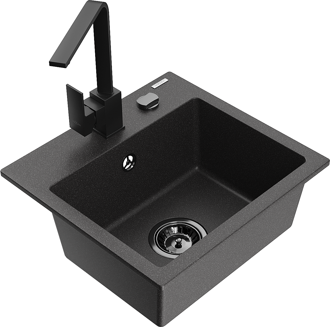 Mexen Milo žulový kuchynský drez s 1-komorou a kuchynskou batériou Rita, čierny s bielymi bodkami - 6505-76-670300-70-B
