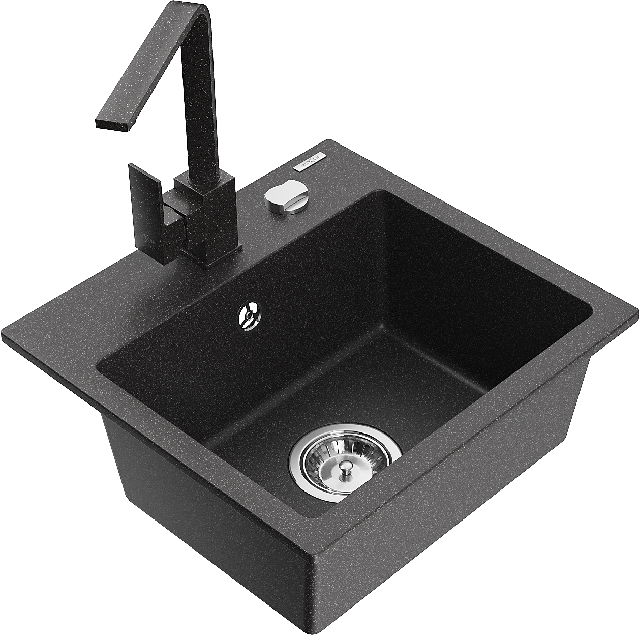 Mexen Milo žulový drez s 1 komorou s kuchynskou batériou Rita, čierny bodkovaný - 6505-76-670300-76