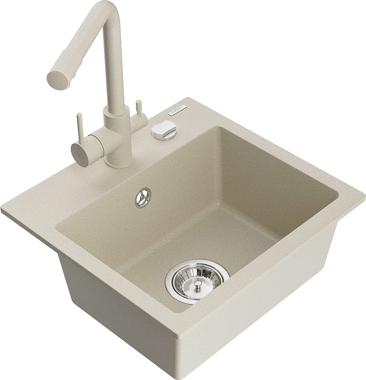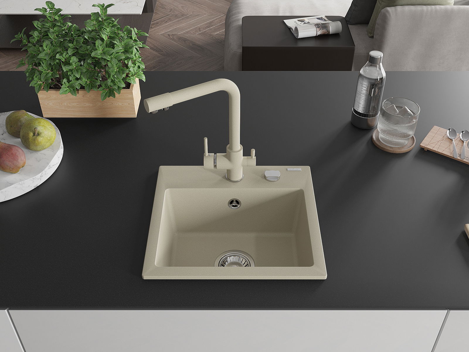 Mexen Milo granitový drez 1-komorový s kuchynskou batériou Duero, béžový - 6505-69-671600-69