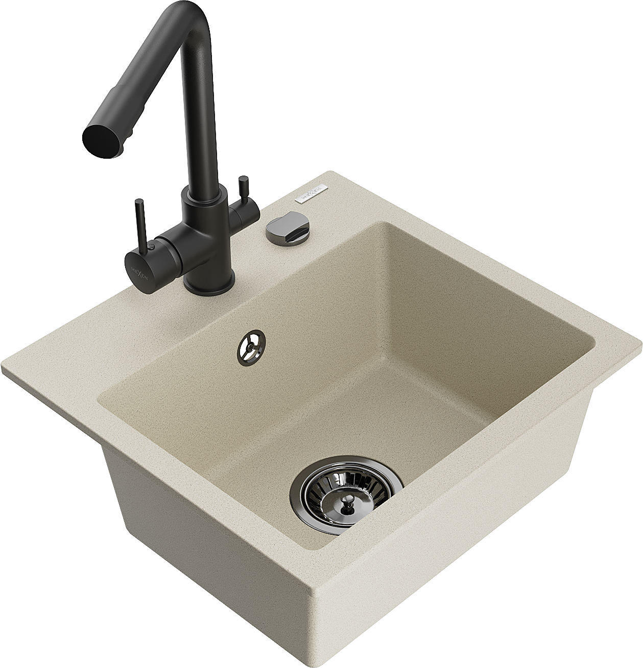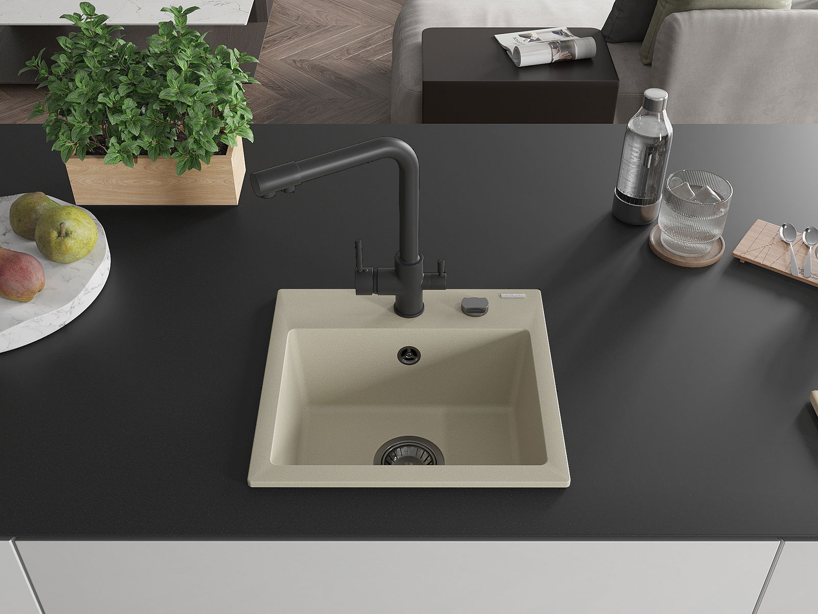 Mexen Milo žulový drez s 1 komorou a kuchynskou batériou Duero, béžový - 6505-69-671600-70