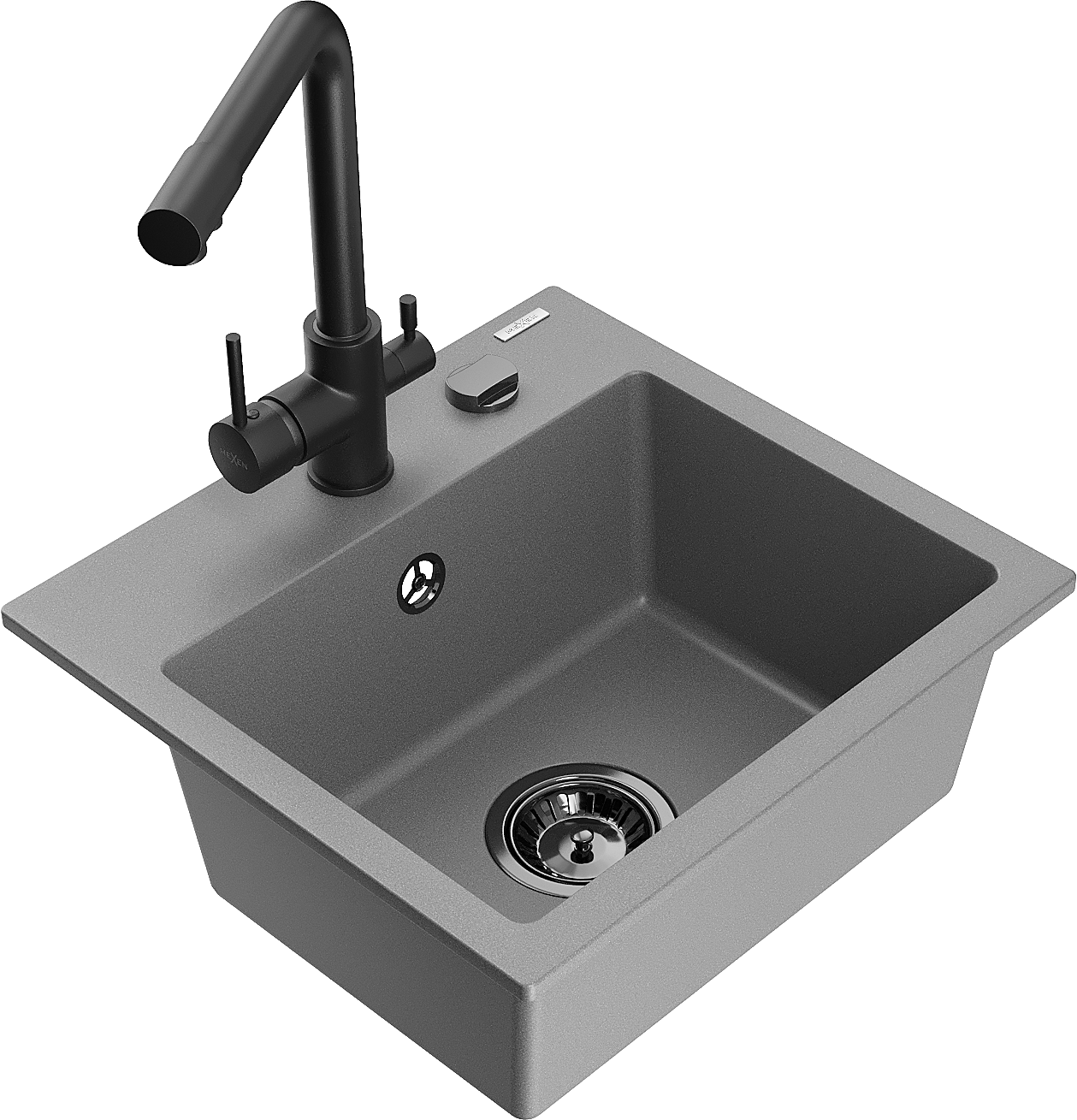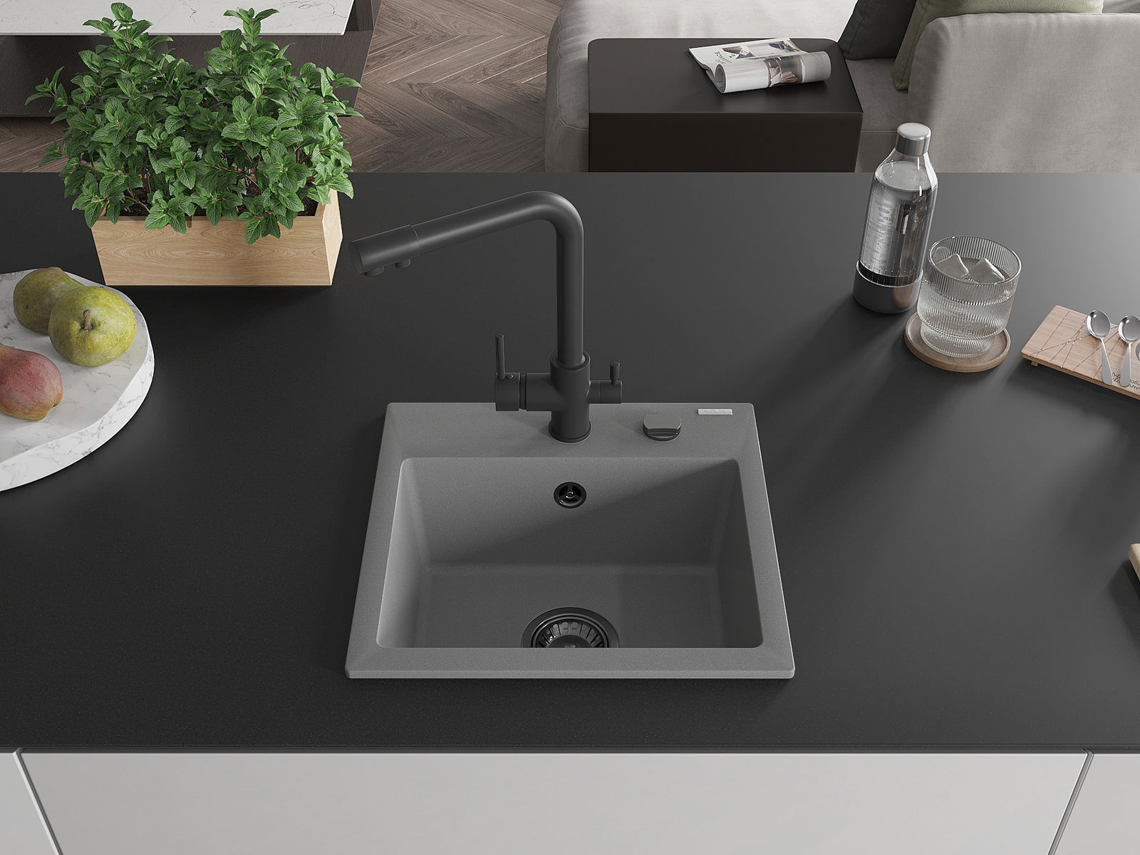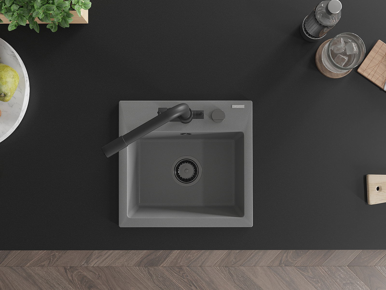 Mexen Milo žulový kuchynský drez 1-komorový s kuchynskou batériou Duero, sivý - 6505-71-671600-70-B