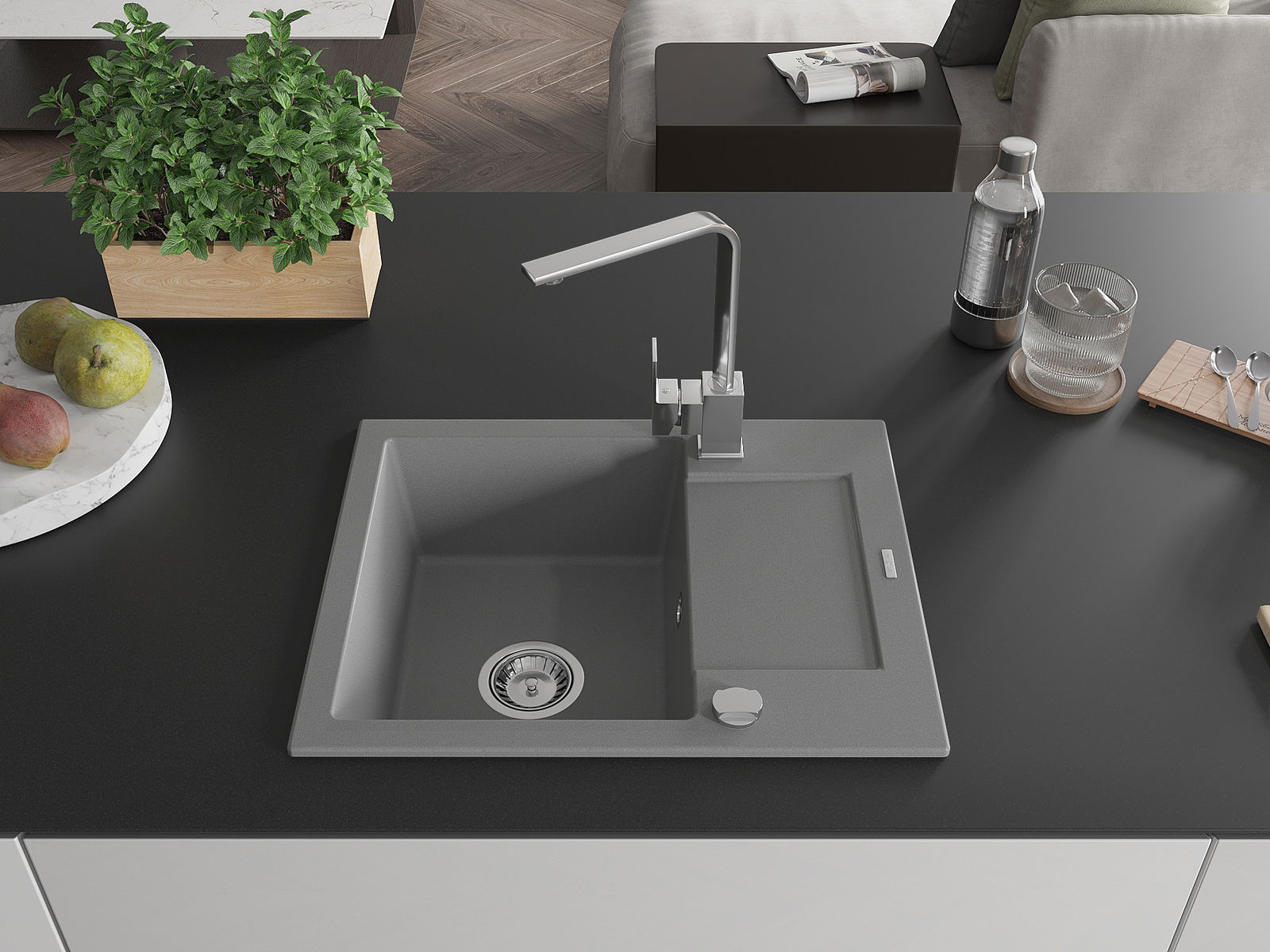 Povrch umývadla je odolný voči škvrnám a sfarbeniu, vďaka čomu sa ľahko čistí a zachováva si svoju farbu po dlhú dobu. Estetický a prakticky dopĺňajúci každú kuchyňu.
