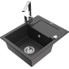 Mexen Enzo jednokomorový granitový drez s odkvapkávačom a kuchynskou batériou Rita, sivý - 6506-71-670300-00