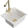 Povrch kuchynského drezu je odolný voči škvrnám a zafarbeniu, vďaka čomu sa ľahko udržiava a zachováva svoju farbu počas dlhého obdobia používania. Estetický a praktický doplnok pre každú kuchyňu.