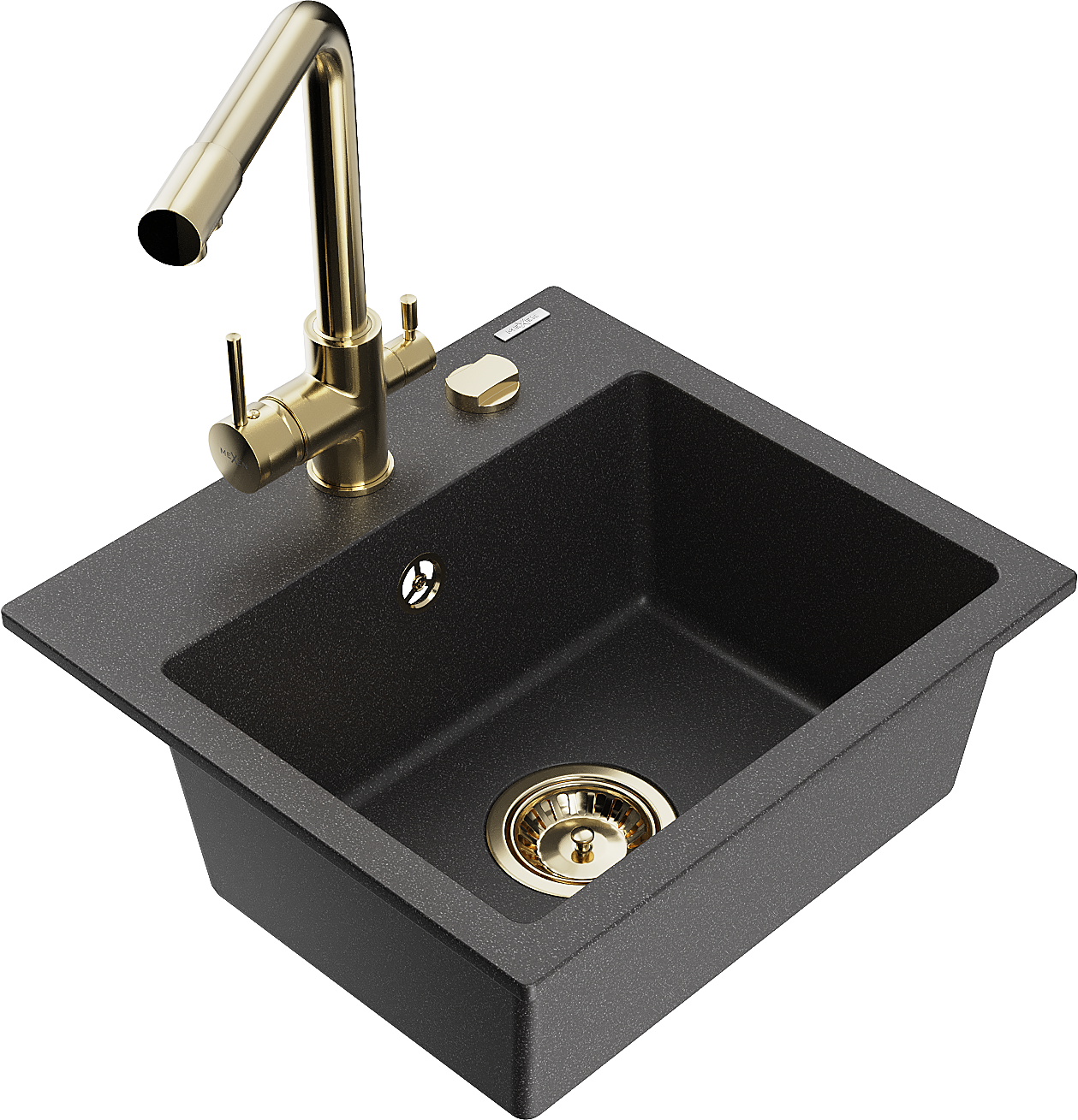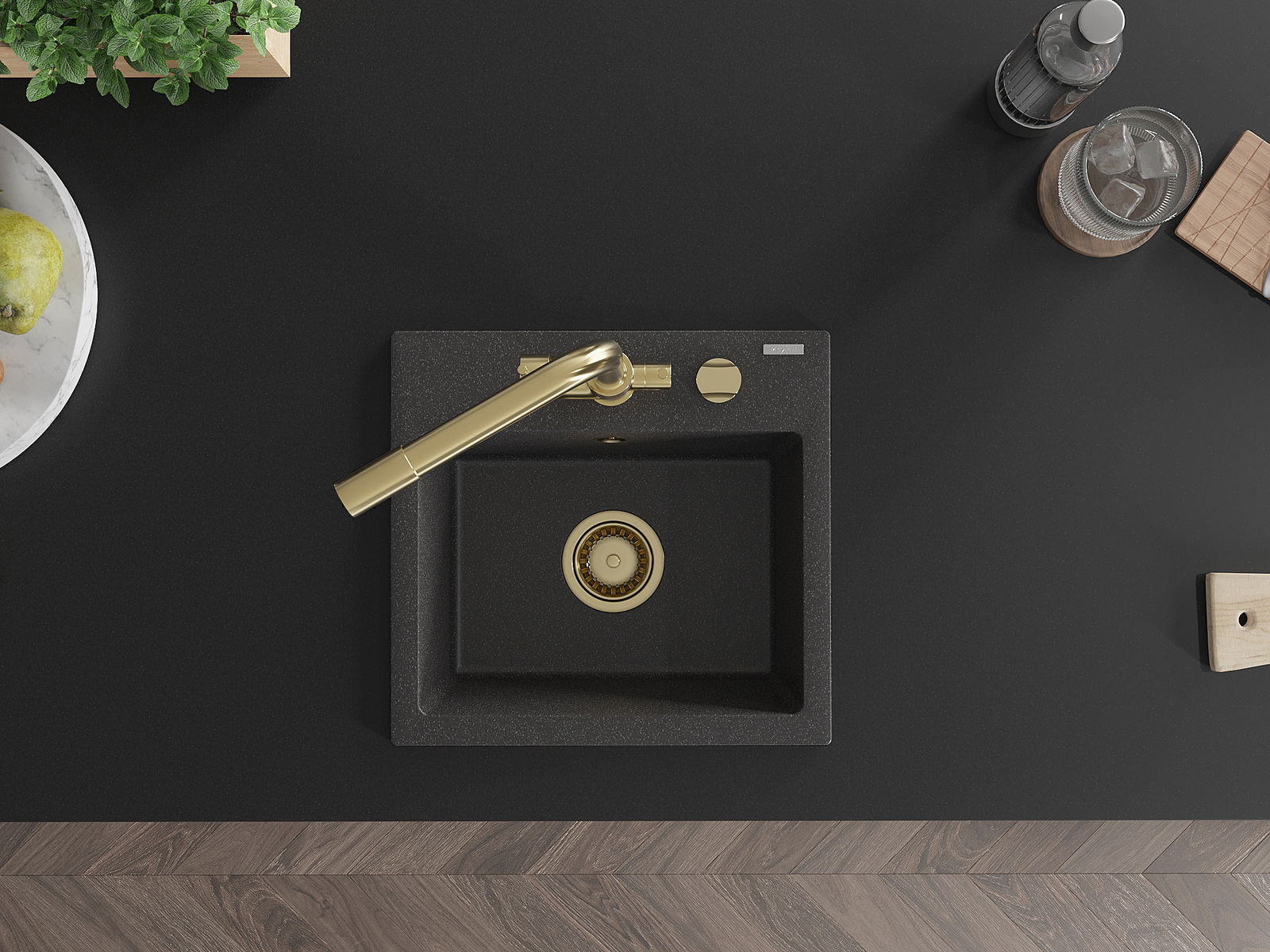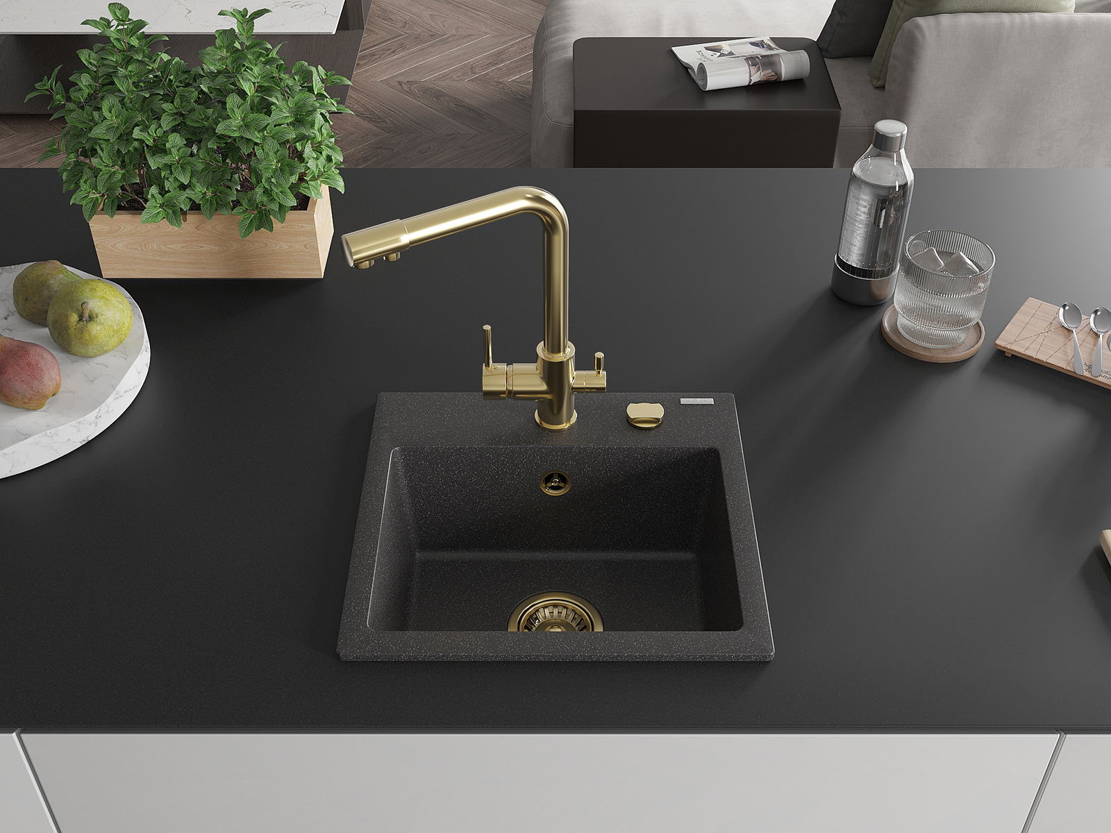 Mexen Milo granitový drez 1-komorový s kuchynskou batériou Duero, čierny škvrnitý - 6505-76-671600-50