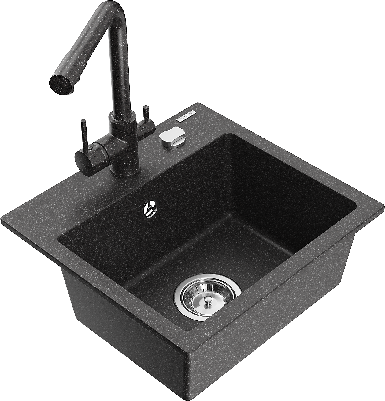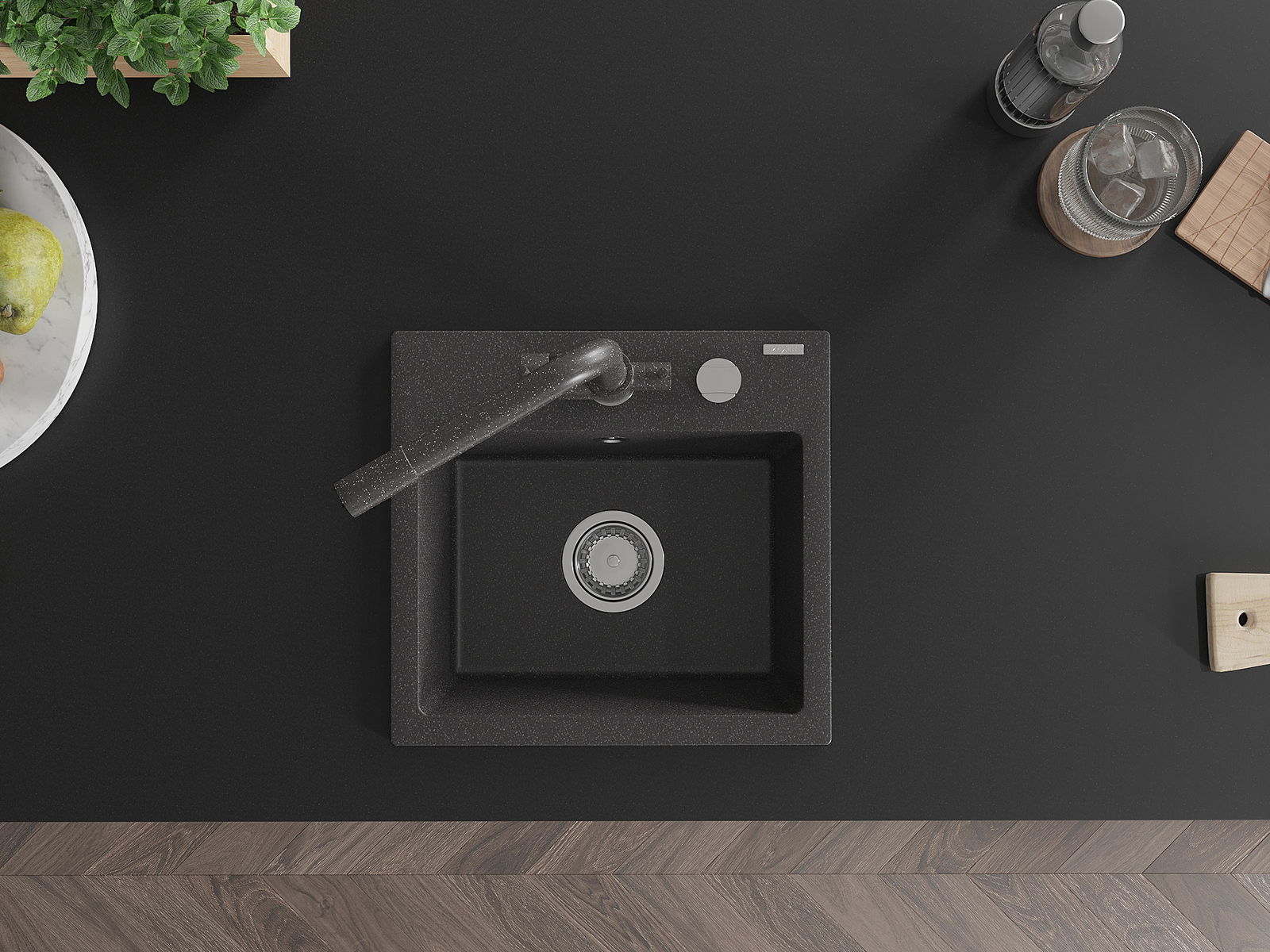 Mexen Milo žulový drez 1-komorový s kuchynskou batériou Duero, čierny bodkovaný - 6505-76-671600-76