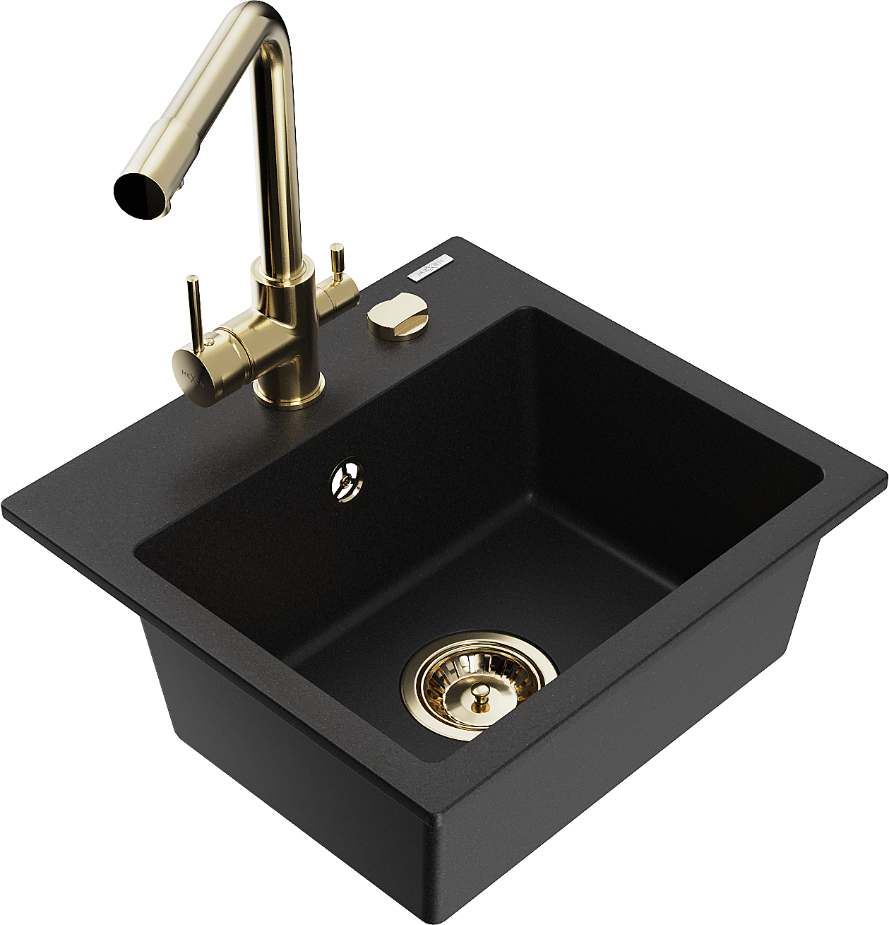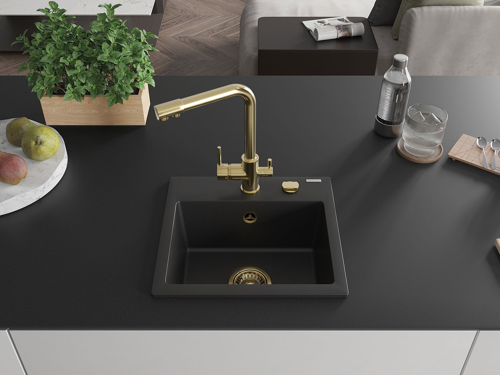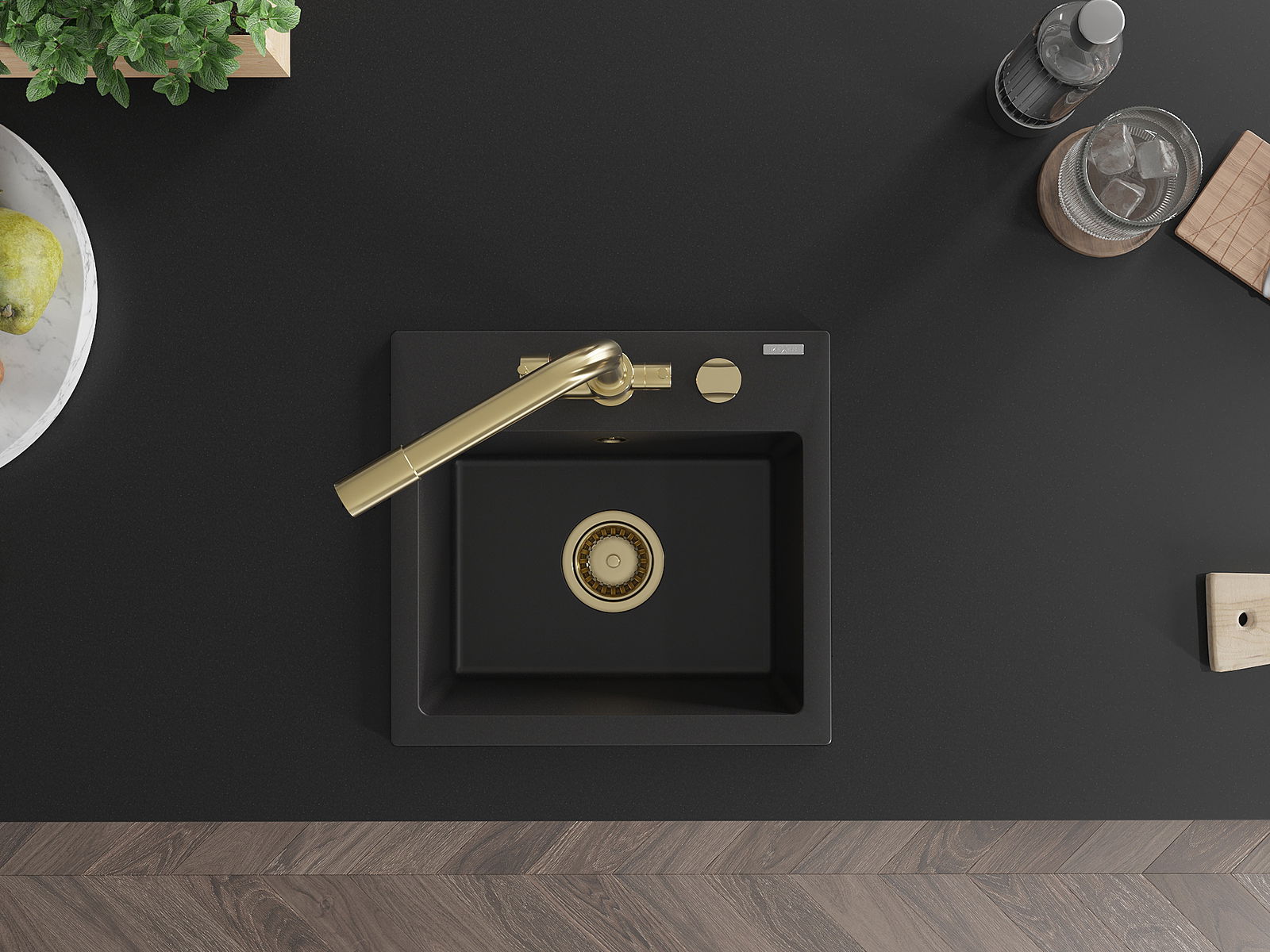 Mexen Milo granitový kuchynský drez 1-komorový s kuchynskou batériou Duero, čierny - 6505-77-671600-50