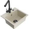 Povrch kuchynského drezu je odolný voči škvrnám a zafarbeniu, vďaka čomu sa ľahko udržiava a zachováva svoju farbu počas dlhého obdobia používania. Estetický a praktický doplnok pre každú kuchyňu.