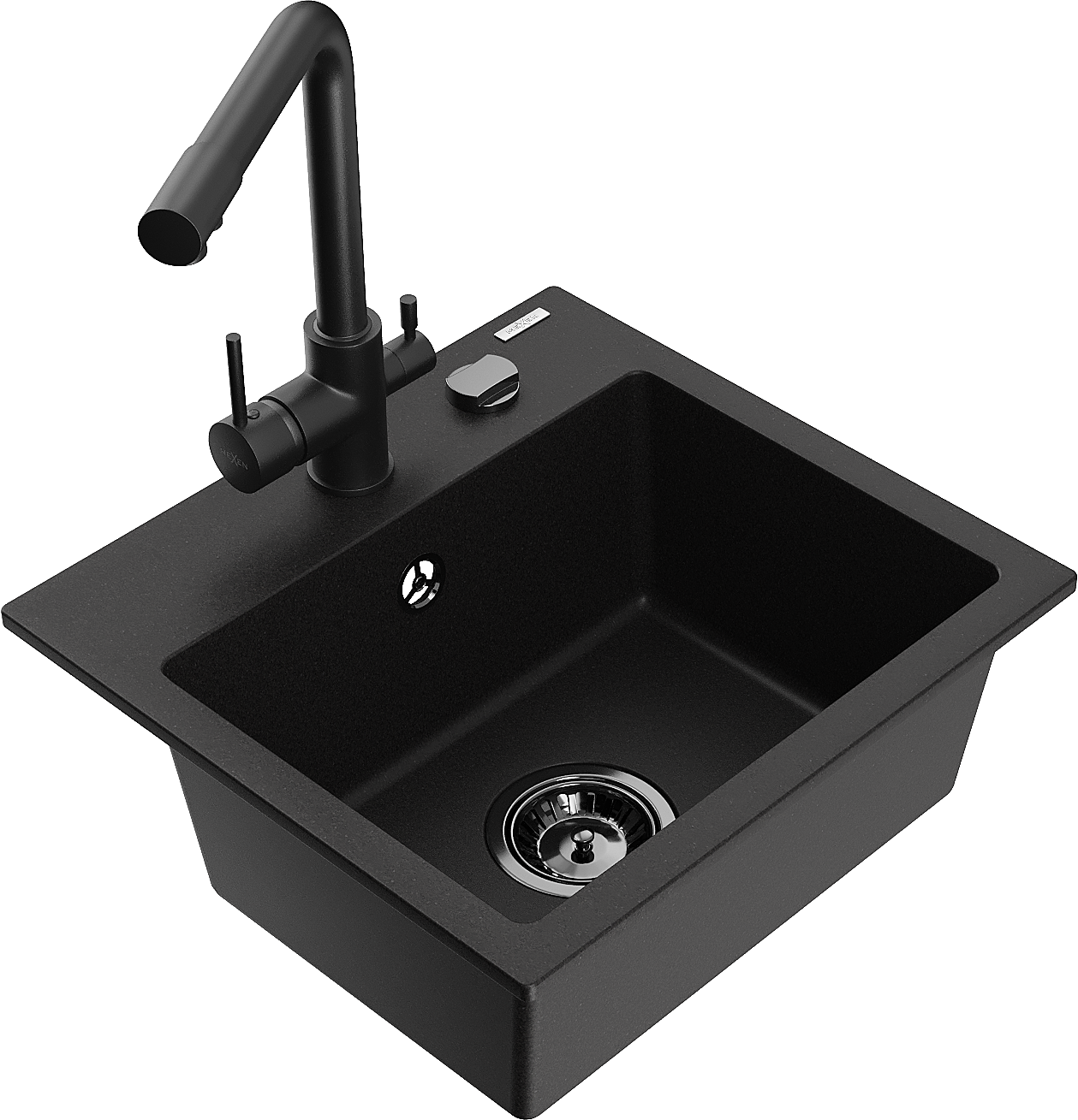 Mexen Milo granitový drez s 1 komorou a kuchynskou batériou Duero, čierny - 6505-77-671600-70-B