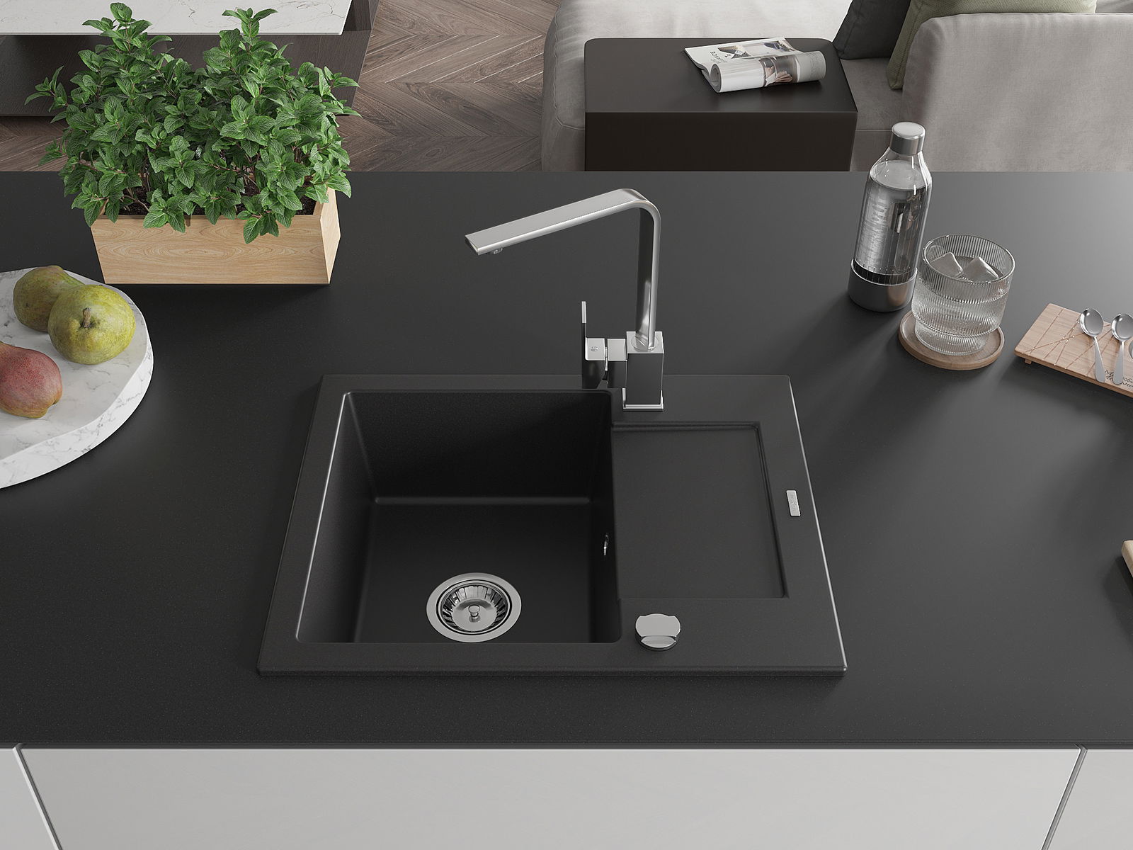 Povrch umývadla je odolný voči škvrnám a sfarbeniu, vďaka čomu sa ľahko čistí a zachováva si svoju farbu po dlhú dobu. Estetický a prakticky dopĺňajúci každú kuchyňu.