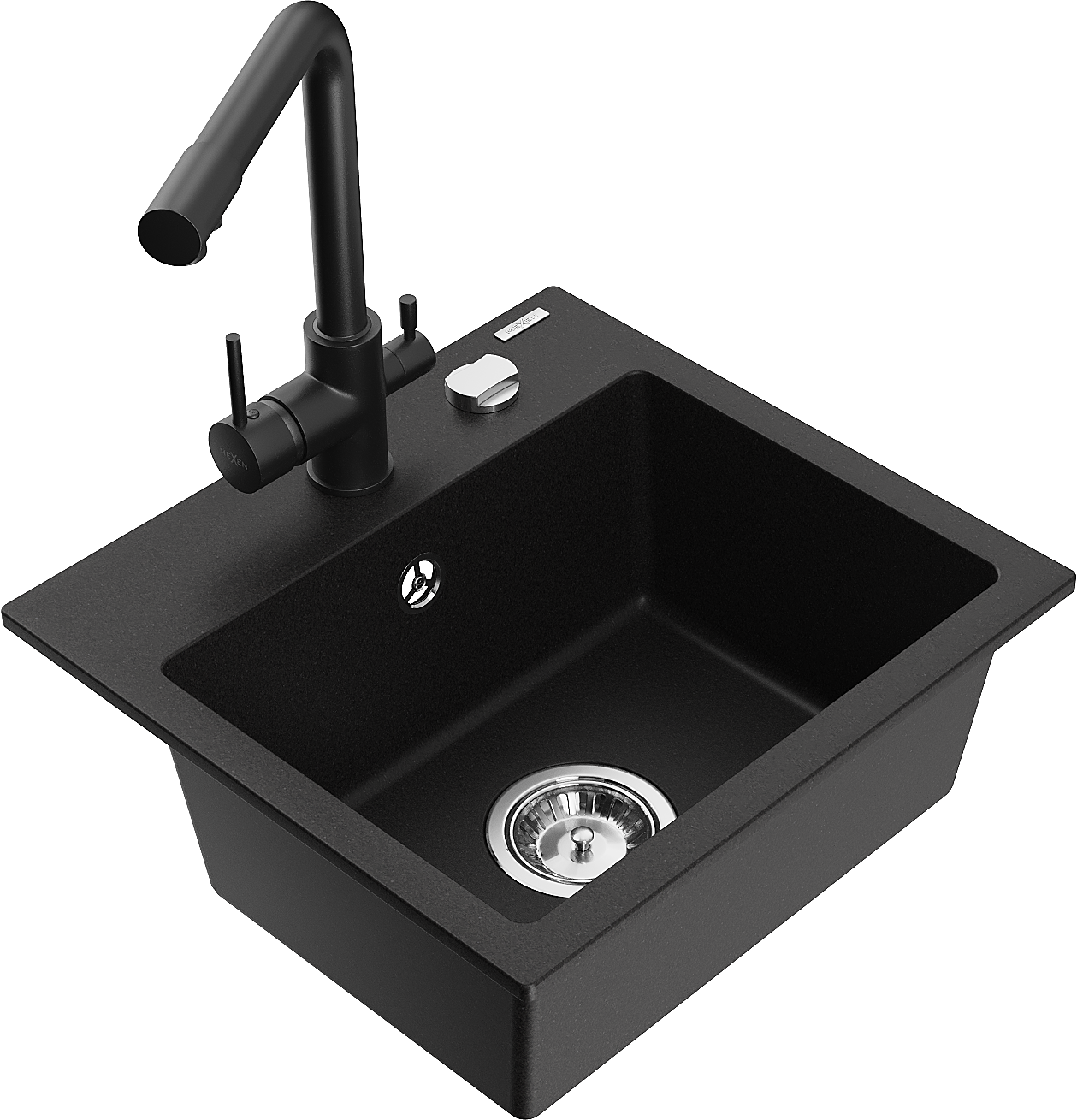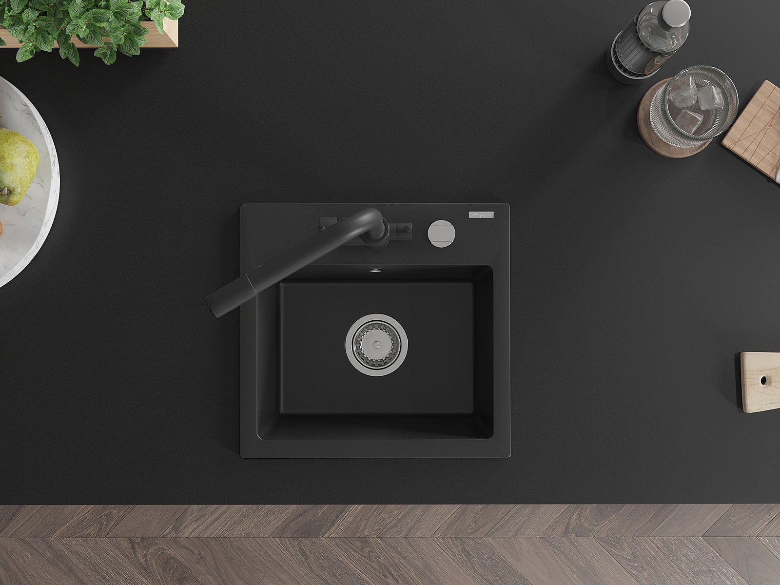 Mexen Milo žulový kuchynský drez s jednou komorou a kuchynskou batériou Duero, čierna - 6505-77-671600-70