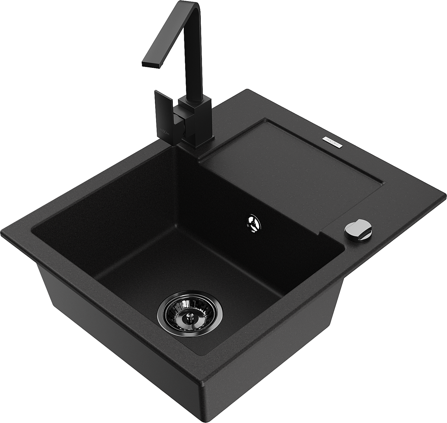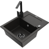 Mexen Enzo kuchynský drez z granitu 1-komorový s odkvapkávačom a kuchynskou batériou Rita, čierny - 6506-77-670300-70-B
