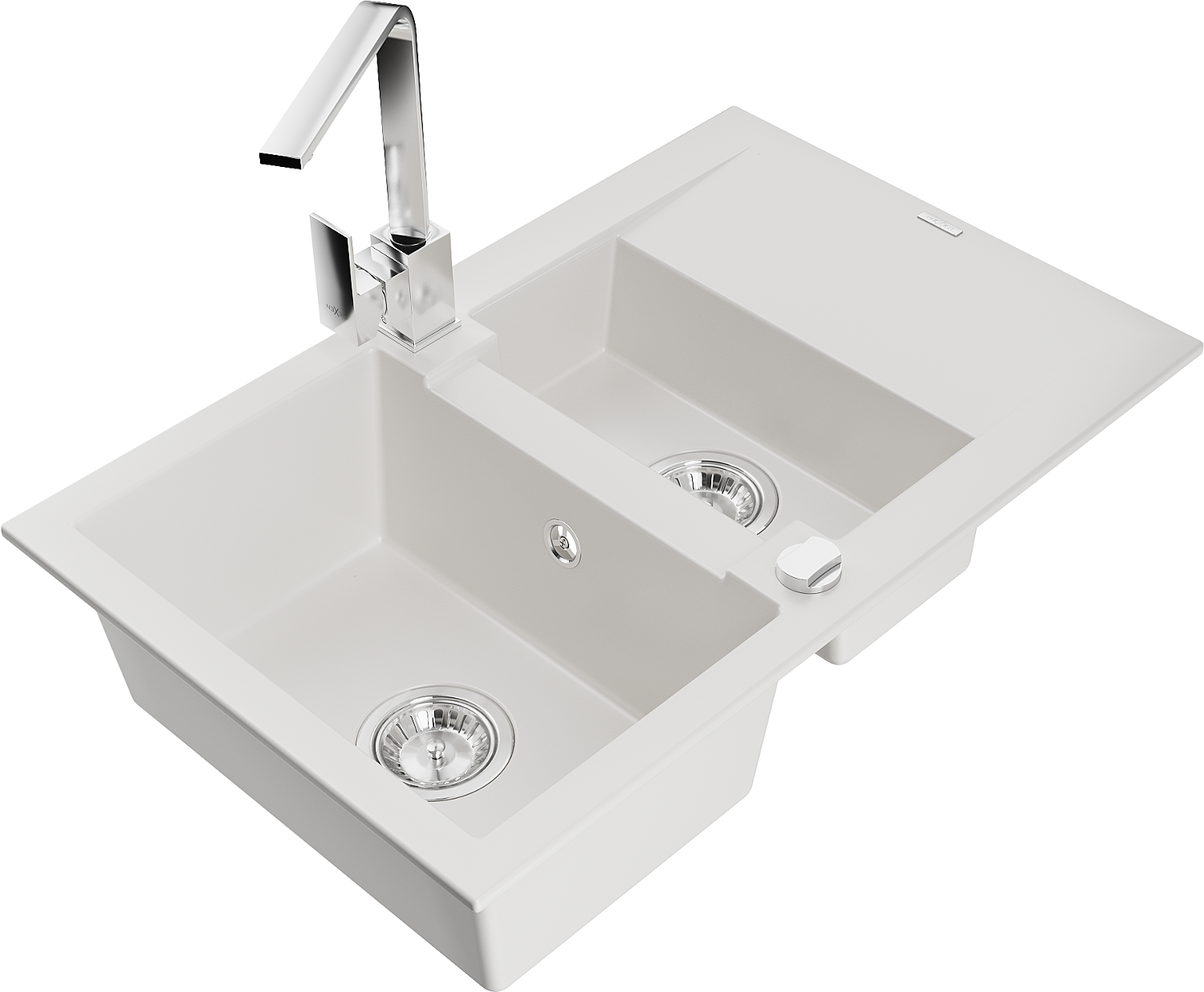 Mexen Gaspar granitový drez 1,5-komorový s odkvapkávačom a kuchynskou batériou Rita, biely - 6507-20-670300-00