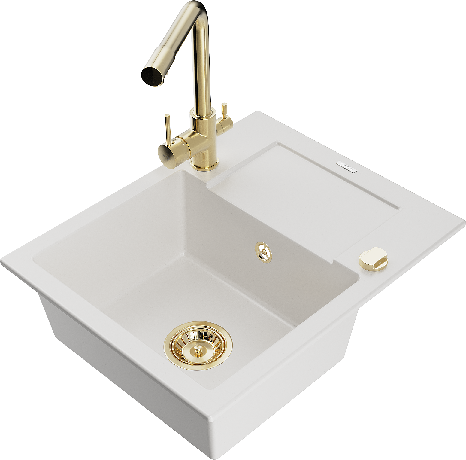 Mexen Enzo kuchynský drez z granitu 1-komorový s odkapávačom a kuchynskou batériou Duero, biely - 6506-20-671600-50