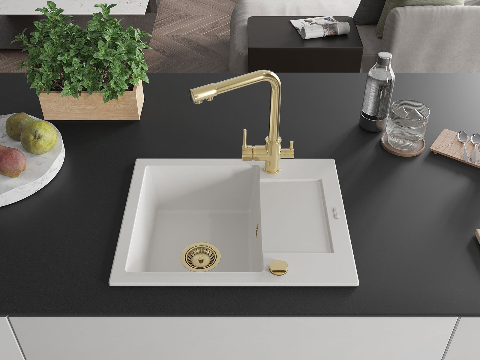 Povrch umývadla je odolný voči škvrnám a sfarbeniu, vďaka čomu sa ľahko čistí a zachováva si svoju farbu po dlhú dobu. Estetický a prakticky dopĺňajúci každú kuchyňu.