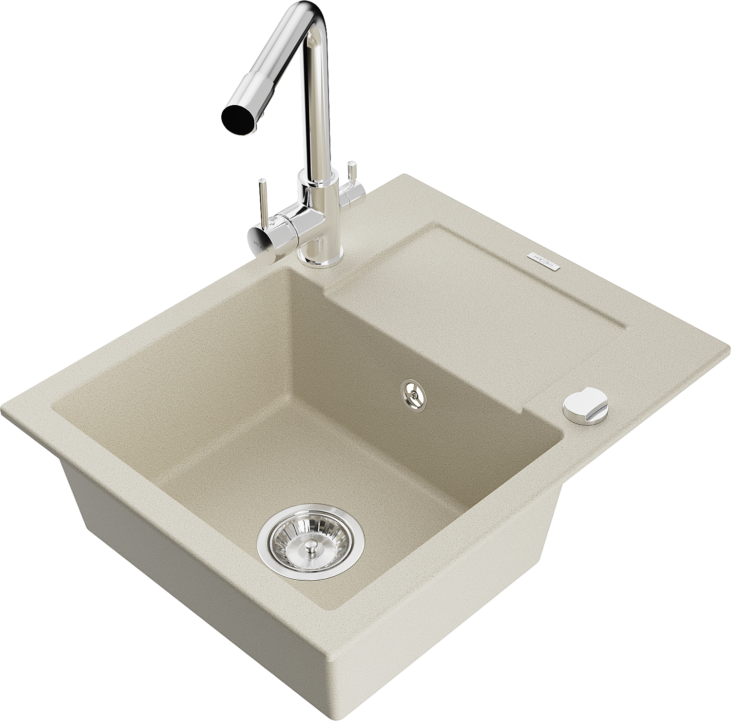 Mexen Enzo granitový kuchynský drez s 1 komorou, s odkvapkávačom a kuchynskou batériou Duero, béžový - 6506-69-671600-00