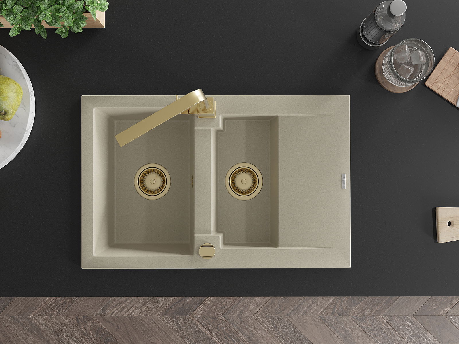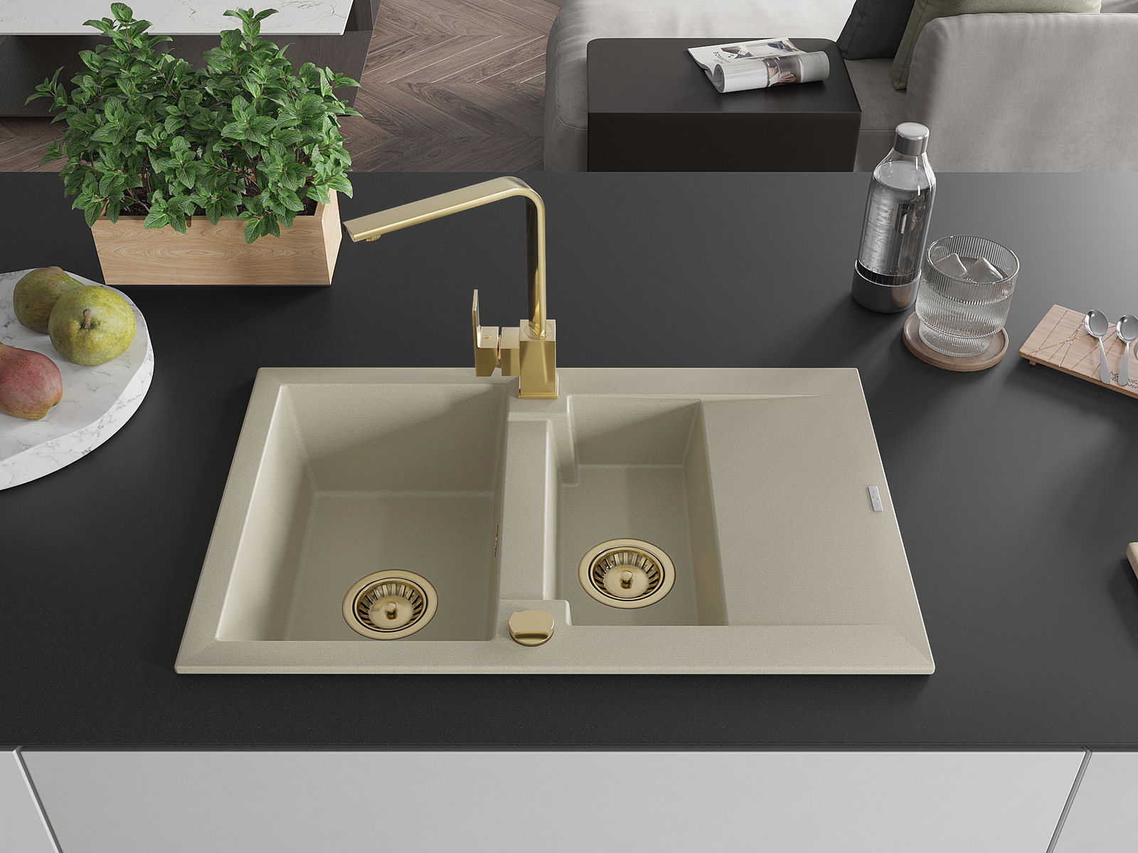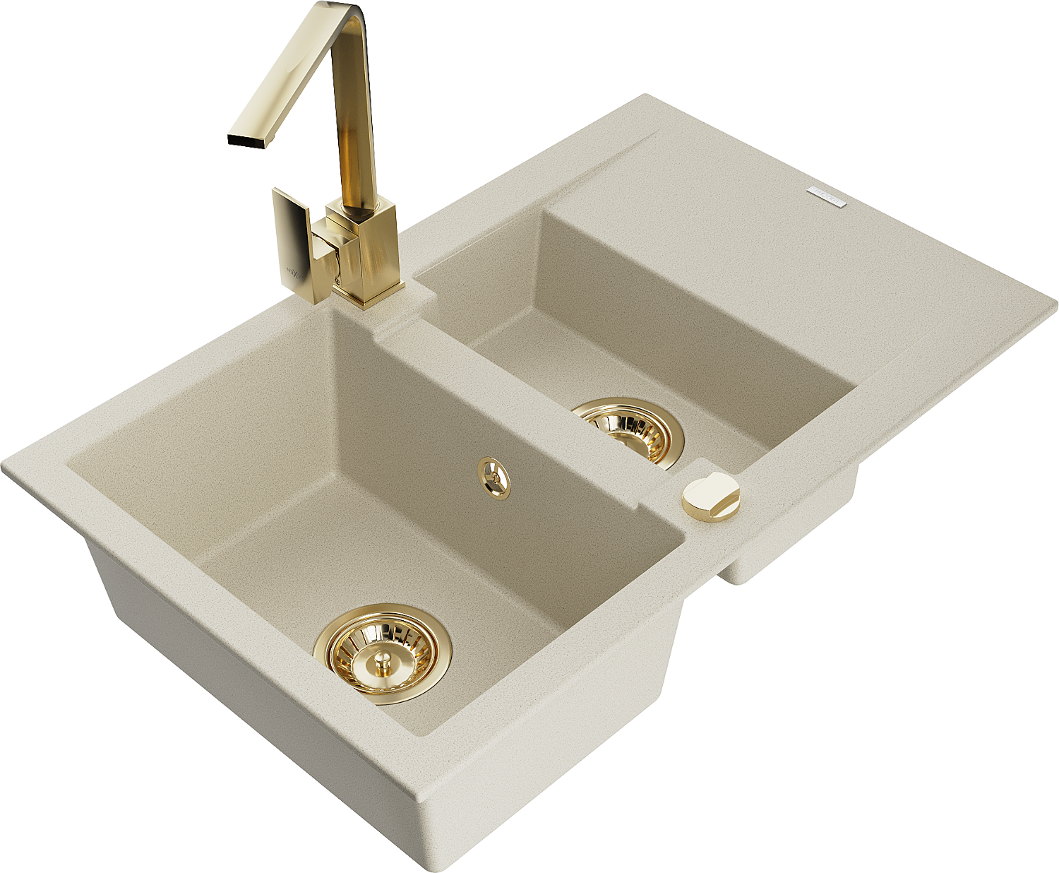 Mexen Gaspar granitový drez 1,5-komorový s odkvapkávačom a kuchynskou batériou Rita, béžový - 6507-69-670300-50