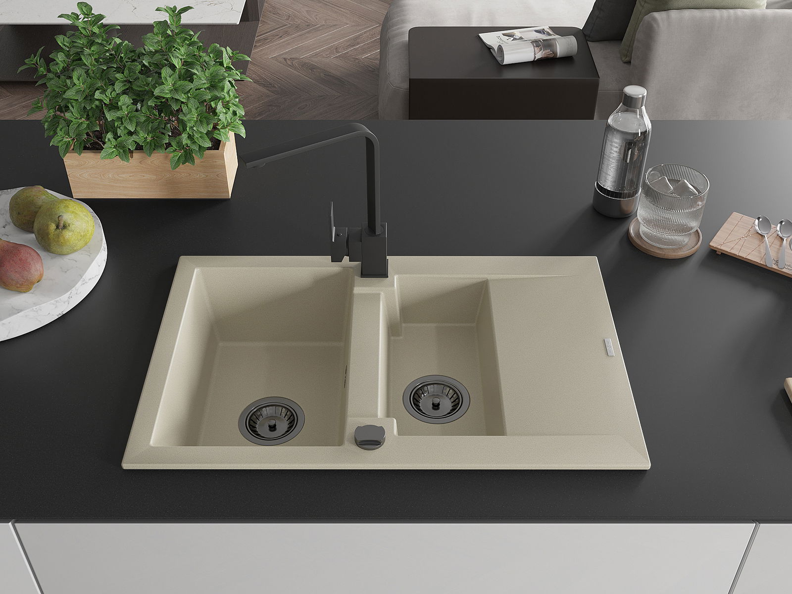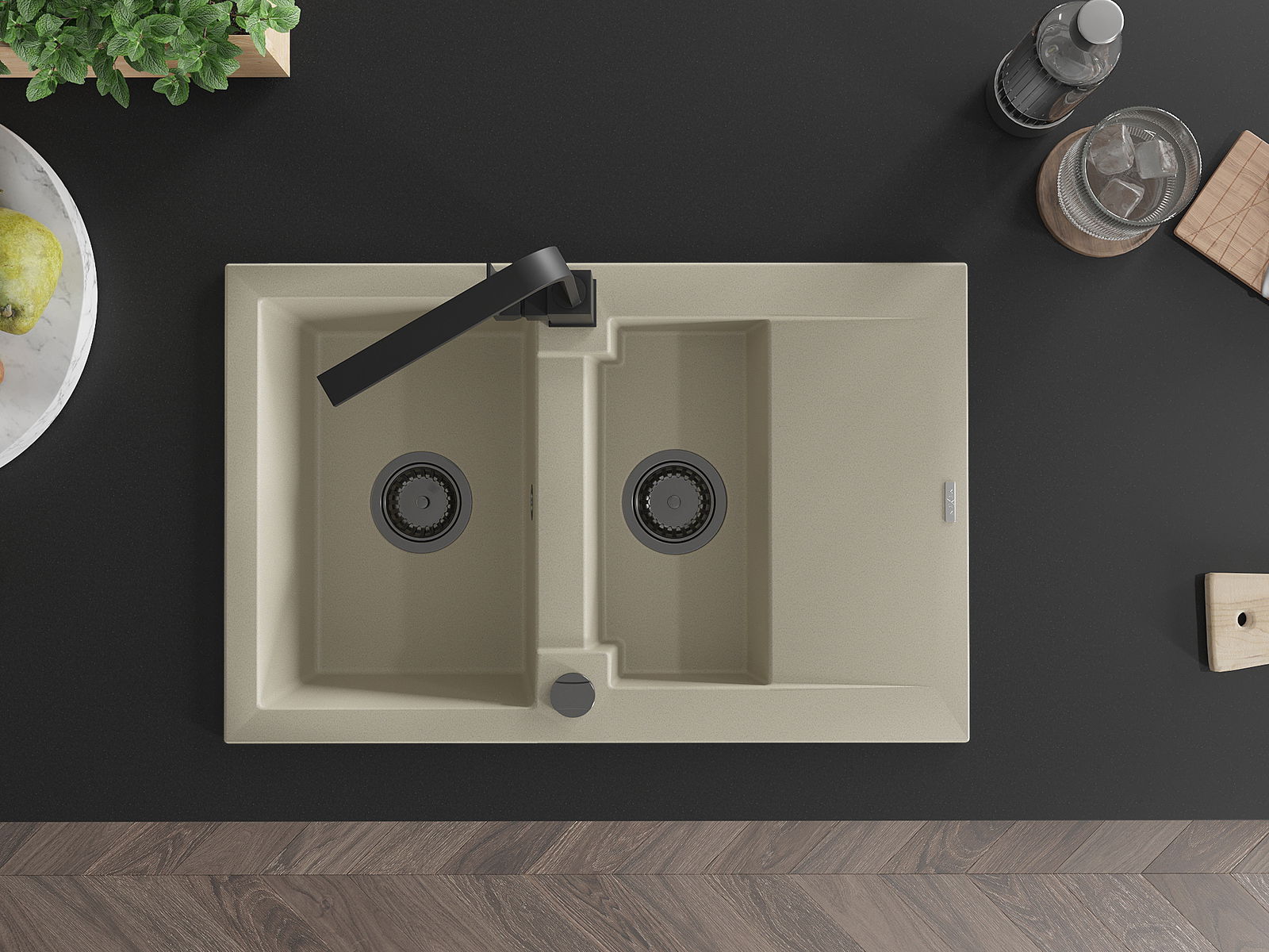 Povrch umývadla je odolný voči škvrnám a sfarbeniu, vďaka čomu sa ľahko čistí a zachováva si svoju farbu po dlhú dobu. Estetický a prakticky dopĺňajúci každú kuchyňu.