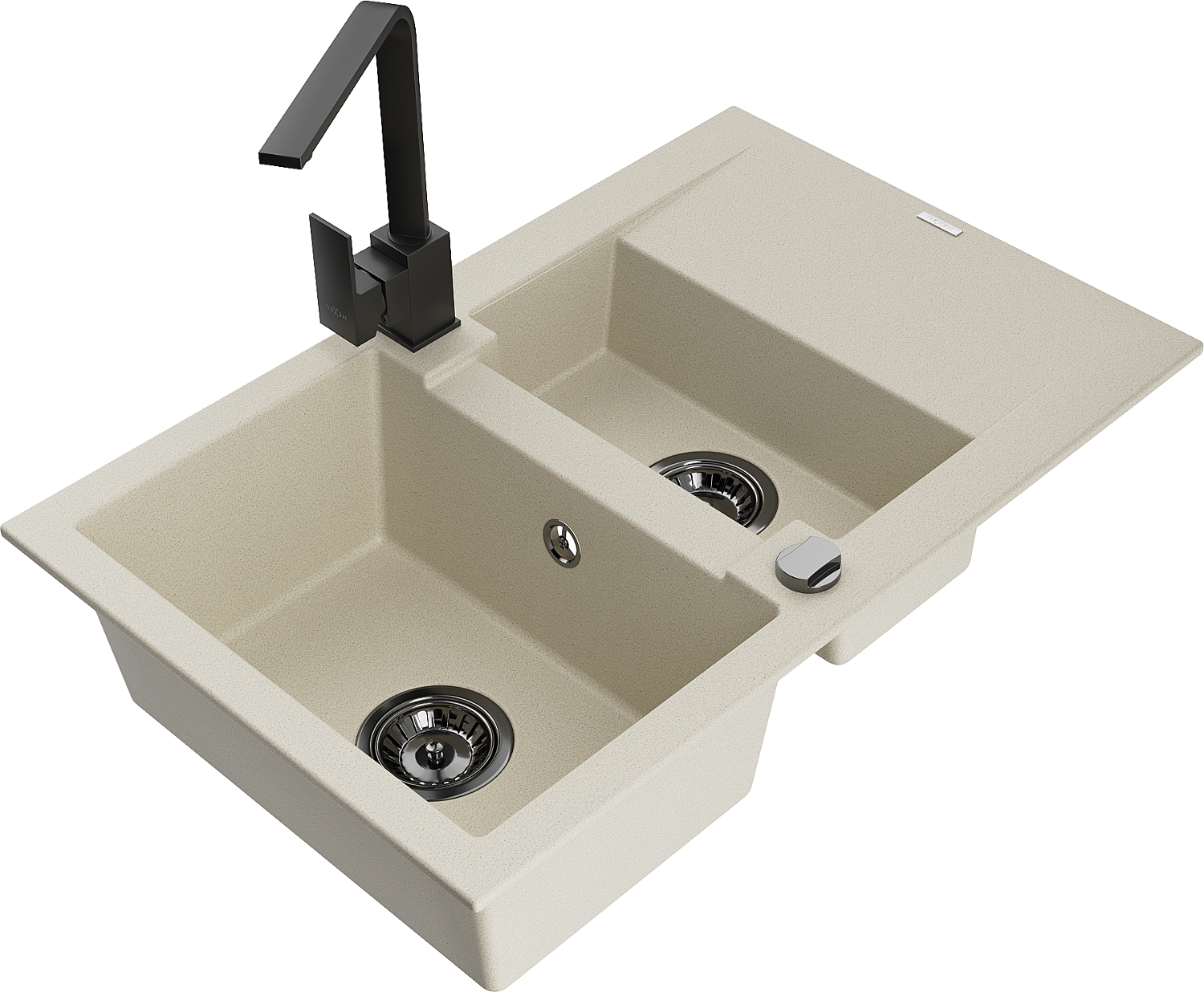 Mexen Gaspar žulový kuchynský drez 1,5-komorový s odkvapkávací plochouk a kuchynskou batériou Rita, béžový - 6507-69-670300-70